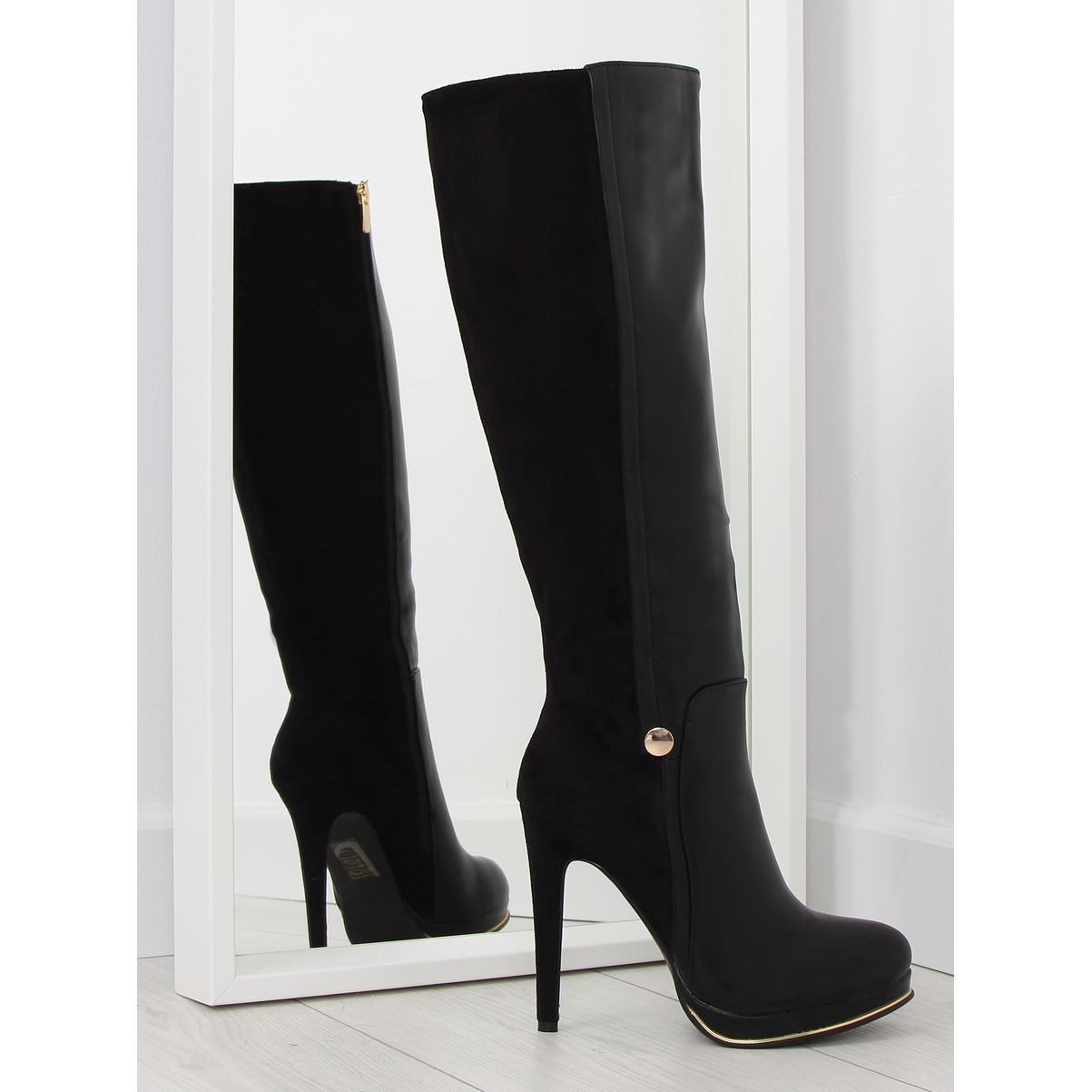 Les bottines plateforme noires JU860 sont la quintessence de l'élégance et du style moderne. D'une hauteur de 11,5 cm, avec une impressionnante plateforme de 2 cm de hauteur, ils mettent parfaitement en valeur la silhouette féminine et ajoutent de la confiance en soi. Leur aspect chic est dû à la semelle soigneusement finie, ornée d'une élégante bordure dorée, qui les distingue des autres modèles.