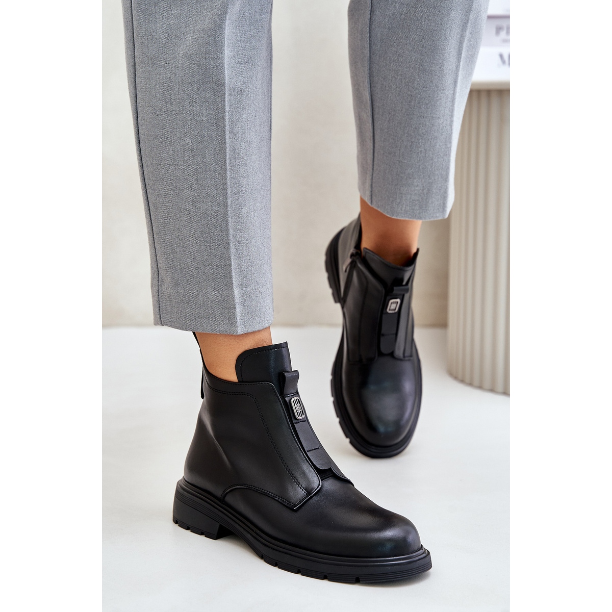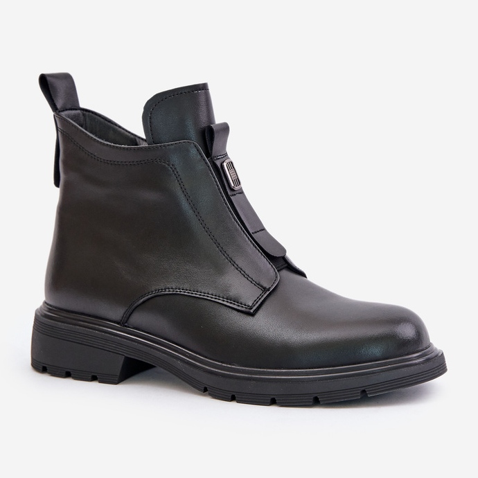 Détails: Bottes plates chaudes en cuir noir Komisa le noir