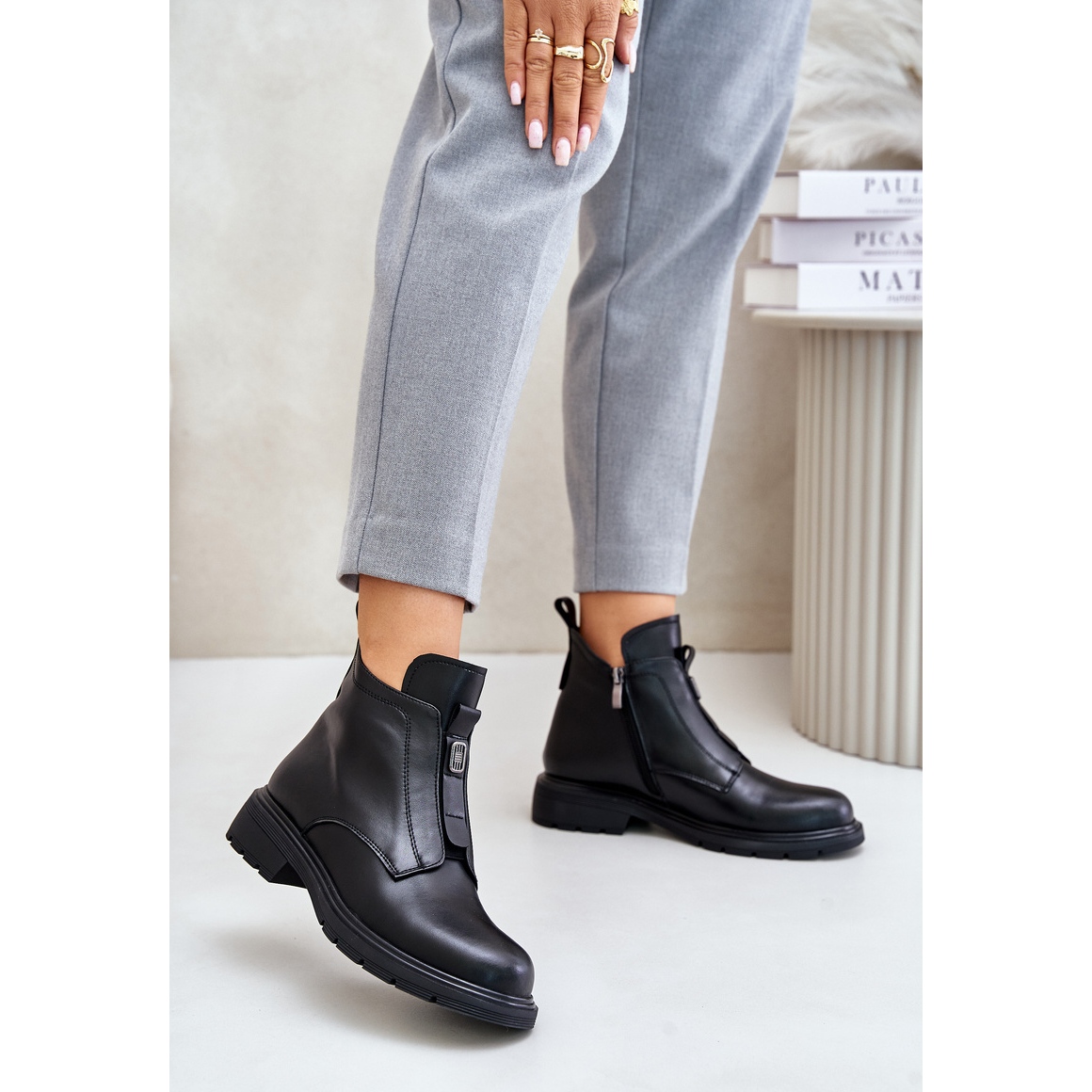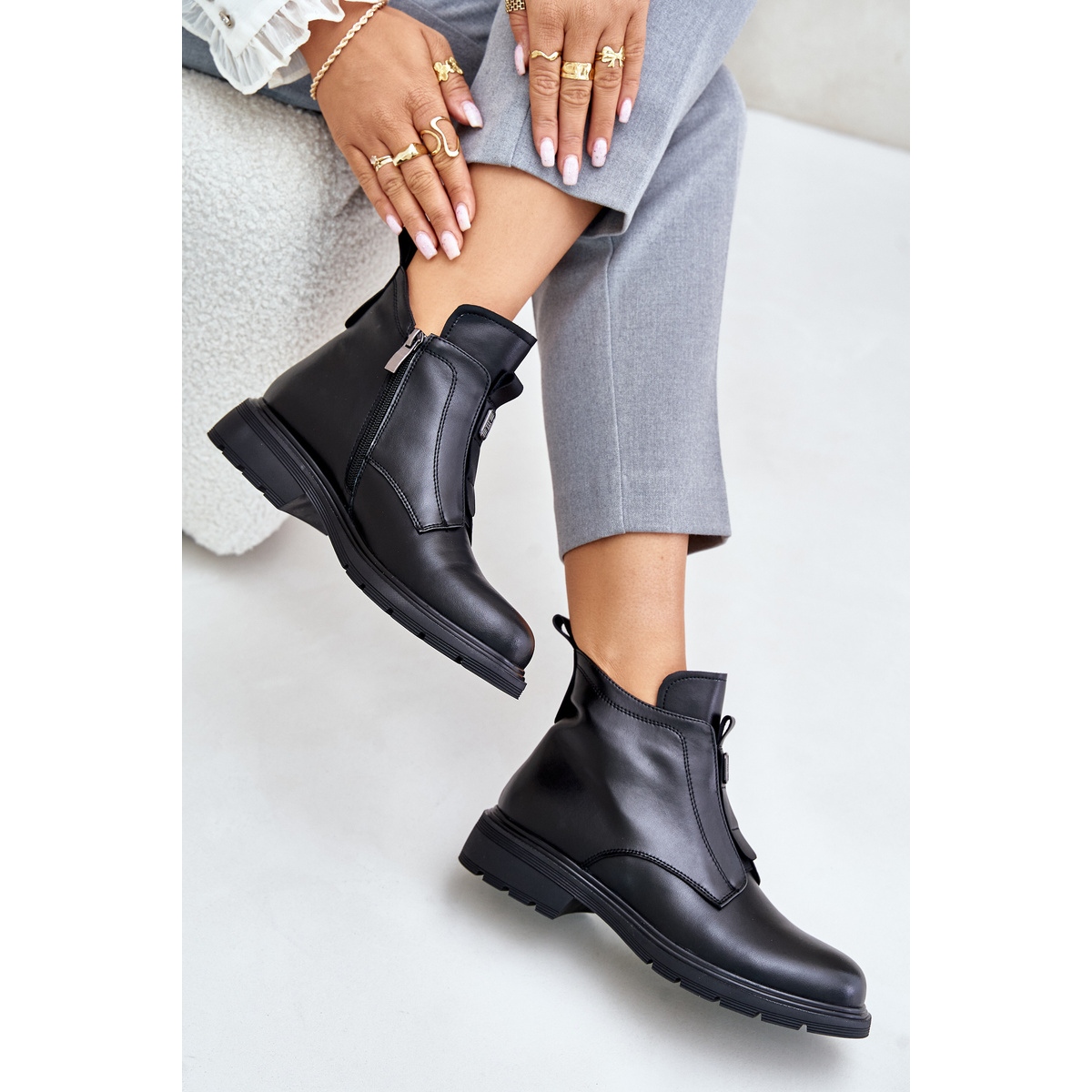 Les bottes de la cheville ont été conçues avec la simplicité de mettre la simplicité de mettre la fermeture à la fermeture à glissière. À l'avant des chaussures, il y a un détail subtil qui leur donne un caractère unique. Le réchauffement avec une couverture de chaussures rend les pieds chauds et confortables, ce qui en fait un complément parfait aux stylisations quotidiennes et automne-hiver.