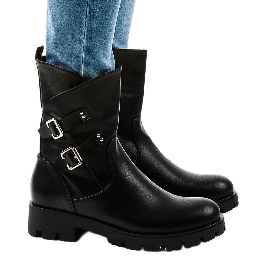 Inna marka Bottines plates noires sur semelle épaisse C162 le noir