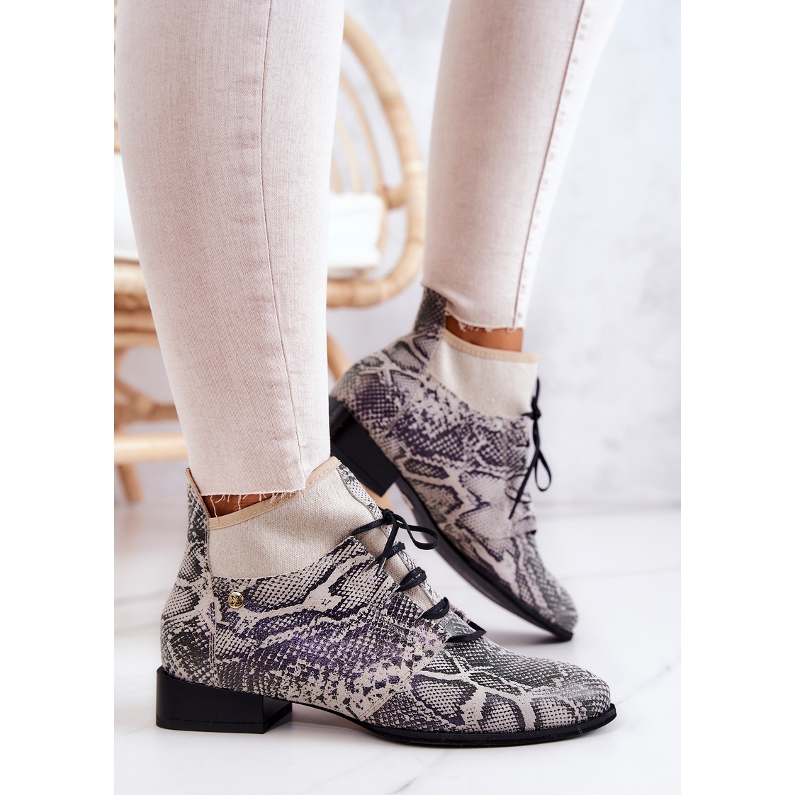 Les chaussures extrêmement élégantes de Maciejka sont maintenant disponibles ! Ils attirent sûrement l'attention avec leur design inhabituel. L'association de plusieurs types de cuirs aux textures différentes leur confère un style vraiment élégant et tendance. Talon plat délicat et tige lacée. Avec de telles chaussures, vous et vos stylisations serez sûrement remarqués. Lorsque vous choisissez une taille, veuillez utiliser le tableau des tailles.