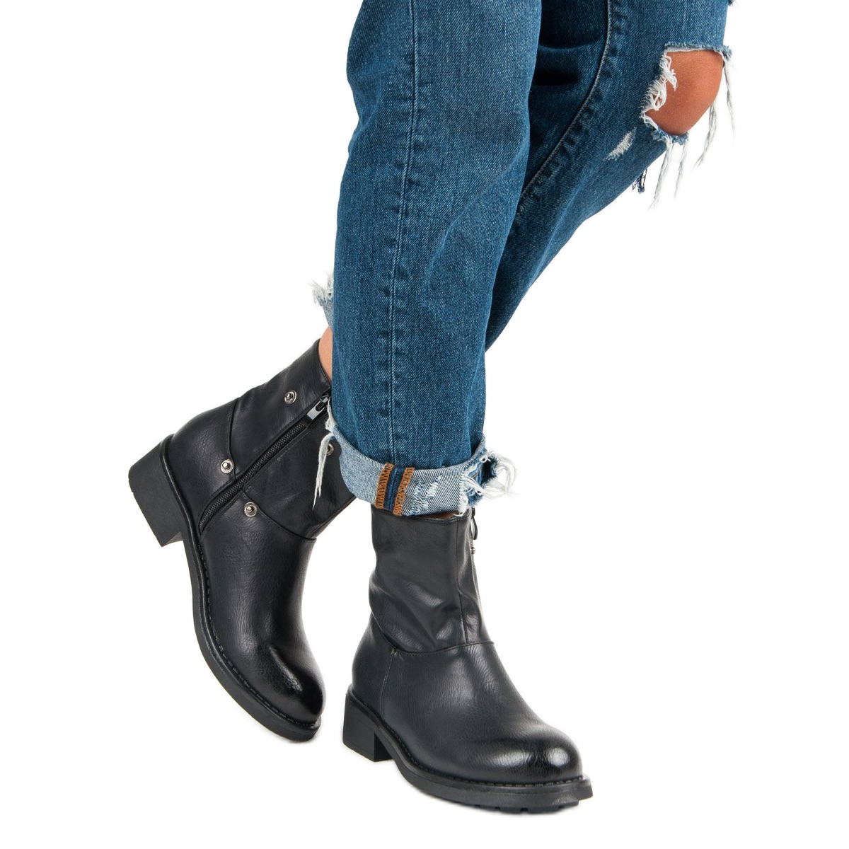 Grâce au bout rond et au talon intégré robuste, les bottes s'adaptent parfaitement au pied, ce qui en fait un choix idéal pour un usage quotidien. Ils s'accordent parfaitement avec différents styles, aussi bien avec des pantalons que des robes. Leur design minimaliste dans un style décontracté et rock en fait un complément parfait à toute garde-robe.