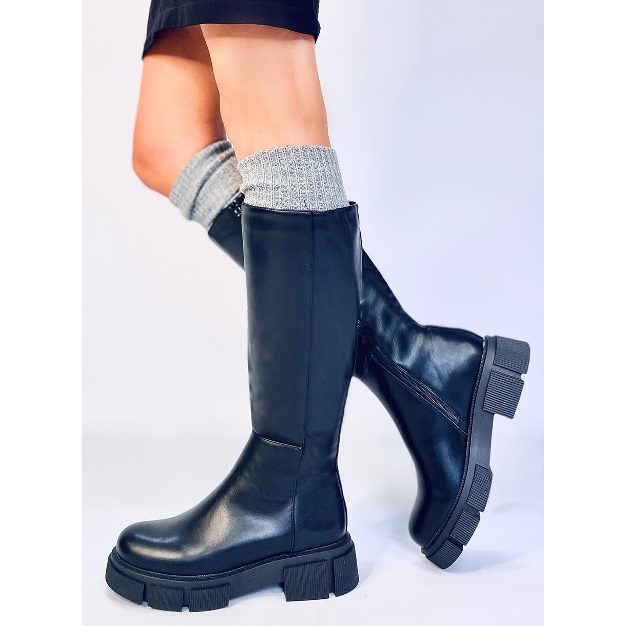 Les bottes noires intemporelles ont été conçues pour les femmes qui apprécient la combinaison du confort et de l'esthétique. Une fermeture zippée pratique sur toute la longueur de la tige permet un enfilage rapide et sans problème. La doublure en mousse ajoute un confort supplémentaire lors de la marche, garantissant que vos pieds restent détendus toute la journée.