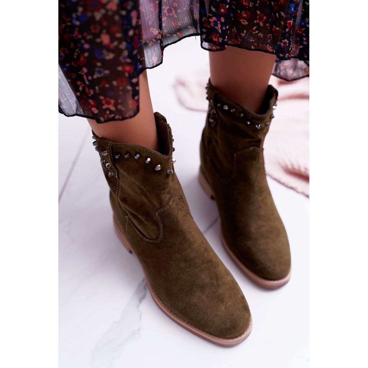 Des détails supplémentaires, tels que des strass et des clous, confèrent aux chaussures caractère et originalité et attireront certainement l'attention. Les bottes arrivent au-dessus de la cheville et leur hauteur supérieure est de 15,5 cm, ce qui les rend parfaites pour être portées avec diverses tenues, aussi bien avec des jeans qu'avec des jupes.