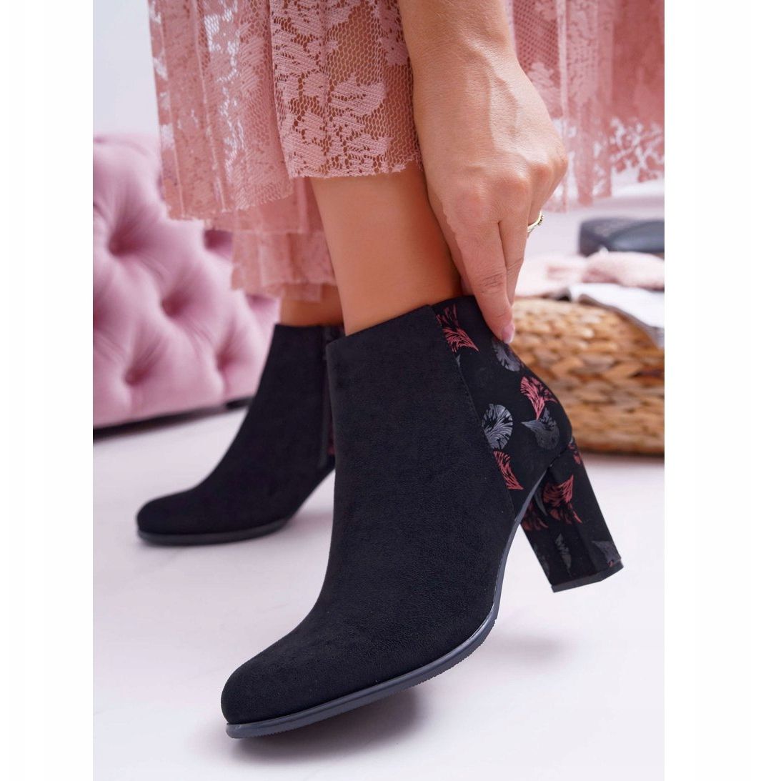 Découvrez un style unique cet hiver avec les bottines à talons hauts pour femme Sergio Leone au motif floral folk rose fantaisie. Ces bottines classiques sont la combinaison parfaite d'élégance et de confort, qui s'intègrent parfaitement dans les dernières tendances de la mode. Fabriqués en cuir suédé écologique de haute qualité, ils complètent parfaitement tout style automne-hiver.