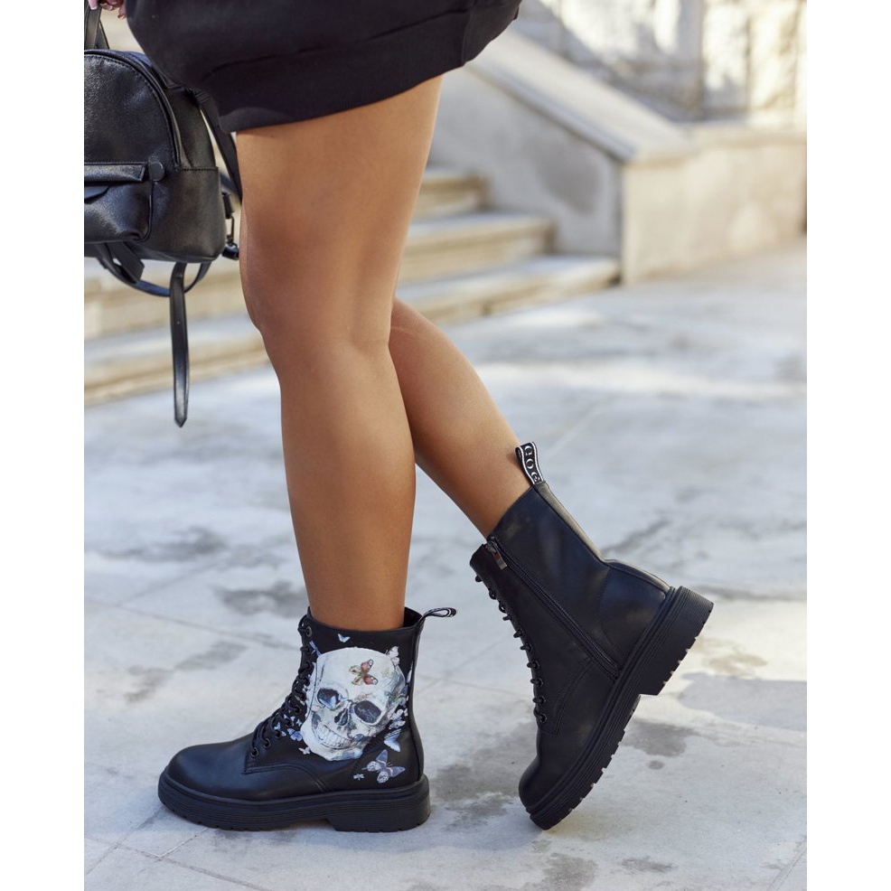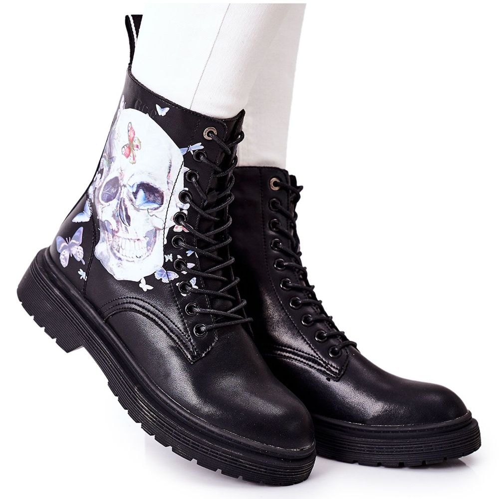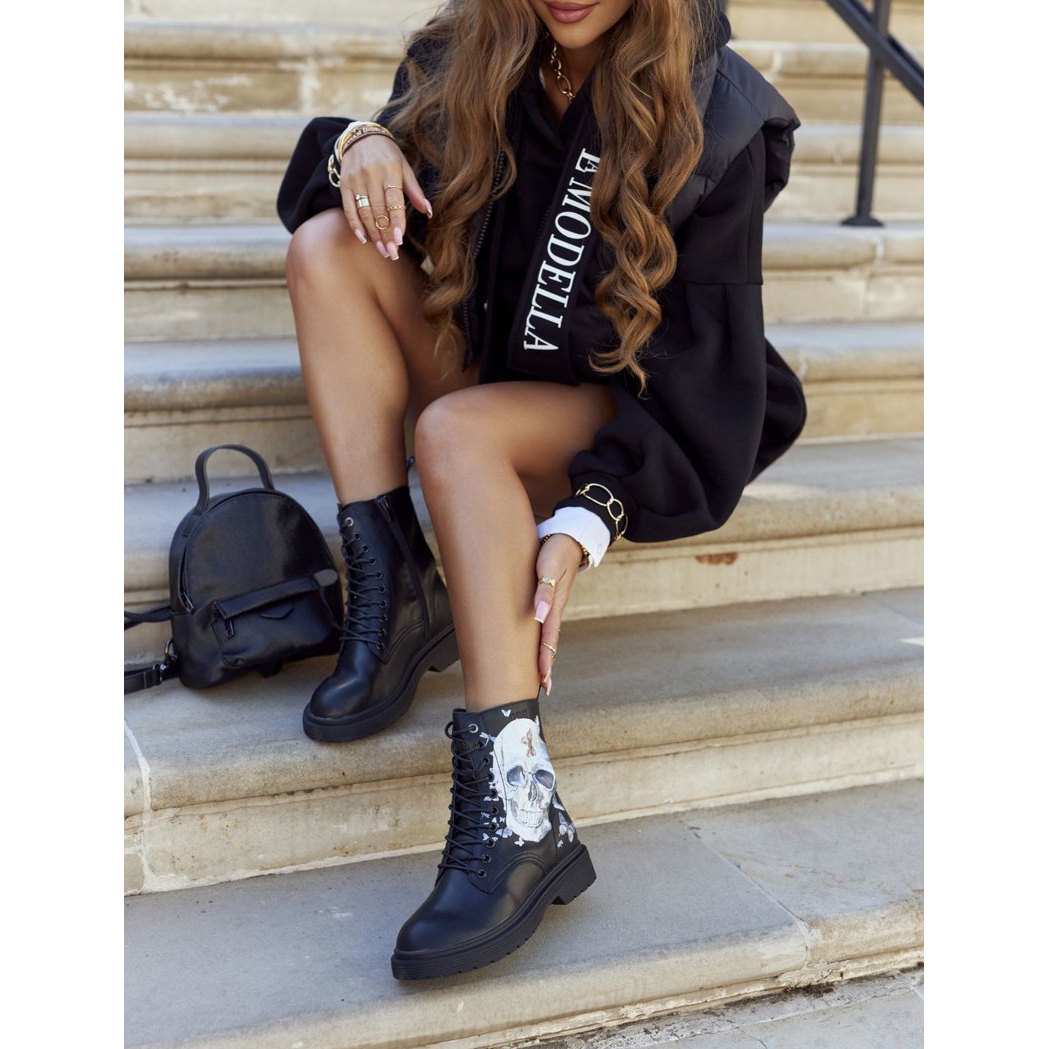 Nous vous présentons d'étonnantes bottines pour femmes avec l'imprimé GOE II2N4045 en noir, qui seront un complément parfait à n'importe quel style. Fabriquées en cuir naturel de haute qualité, ces chaussures allient fonctionnalité et design tendance. Leur imprimé sombre sur le côté de la tige ajoute du caractère, permettant à chaque femme de se sentir spéciale.