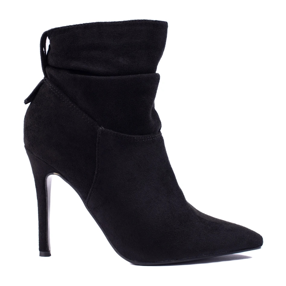 Les bottes classiques de W. Potocki combinent l'élégance avec une ligne de broches femelle. Fabriqué en daim écologique de haute qualité en noir profond, idéal pour les sorties du soir, les célébrations et les réunions élégantes en automne / hiver.