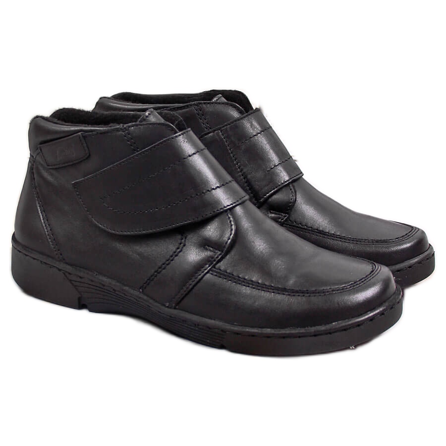 Bottes pour femmes en cuir avec fermeture velcro Łukbut 676 noir