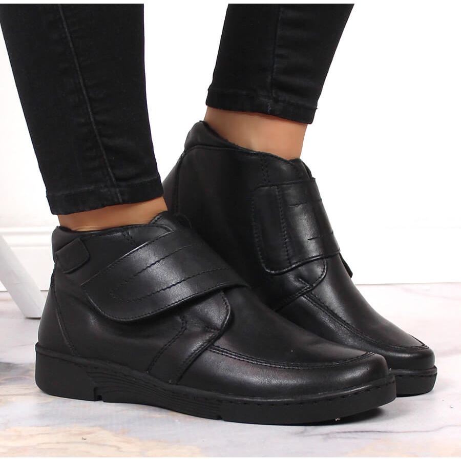 Détails: Bottes pour femmes en cuir avec fermeture velcro Łukbut 676 le noir