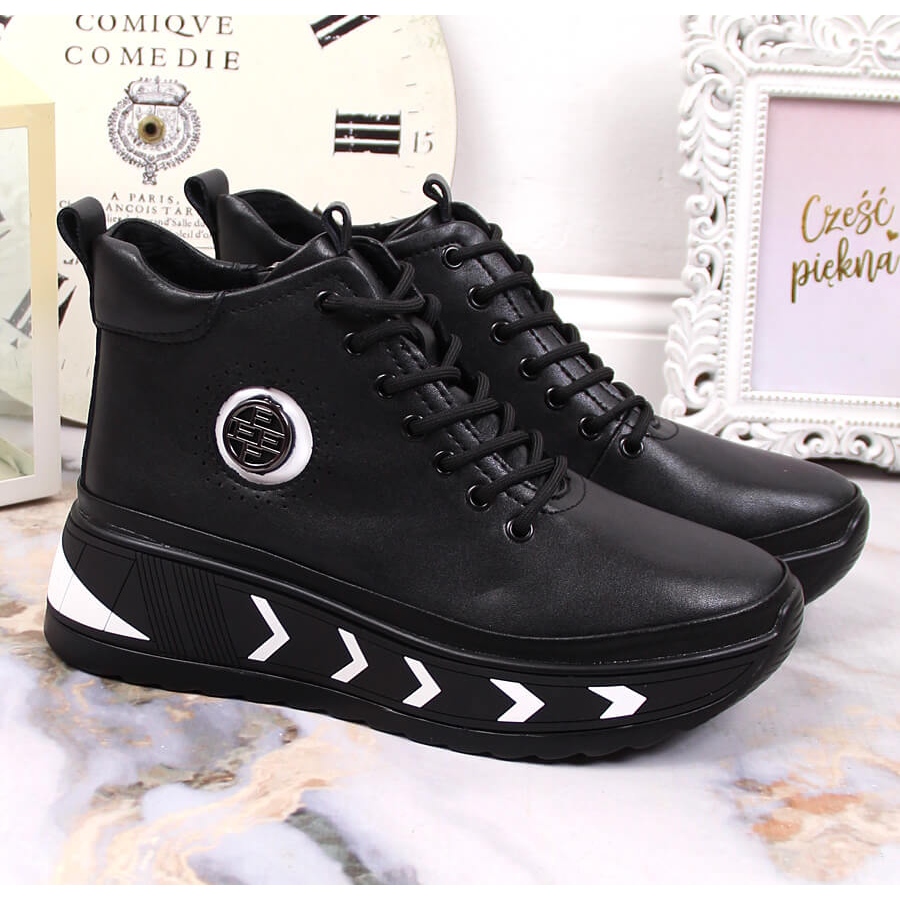 Détails: Bottes pour femmes en cuir noir Filippo sur un talon compensé le noir