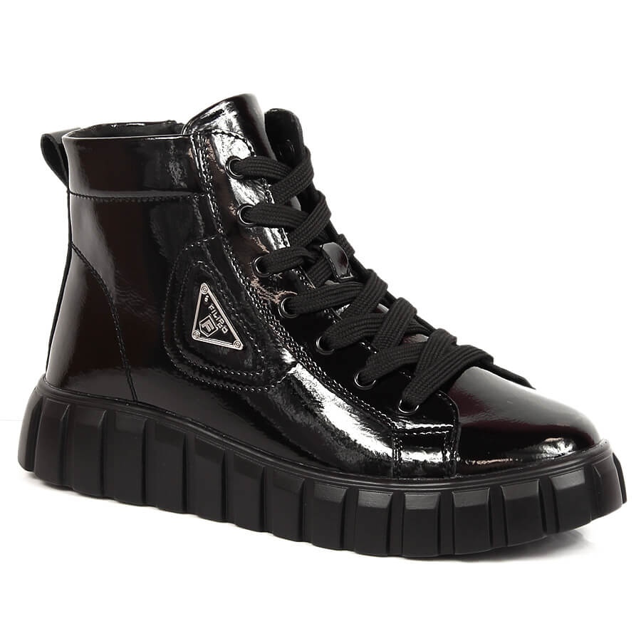 Détails: Bottes pour femmes en cuir verni avec plateforme Filippo noire