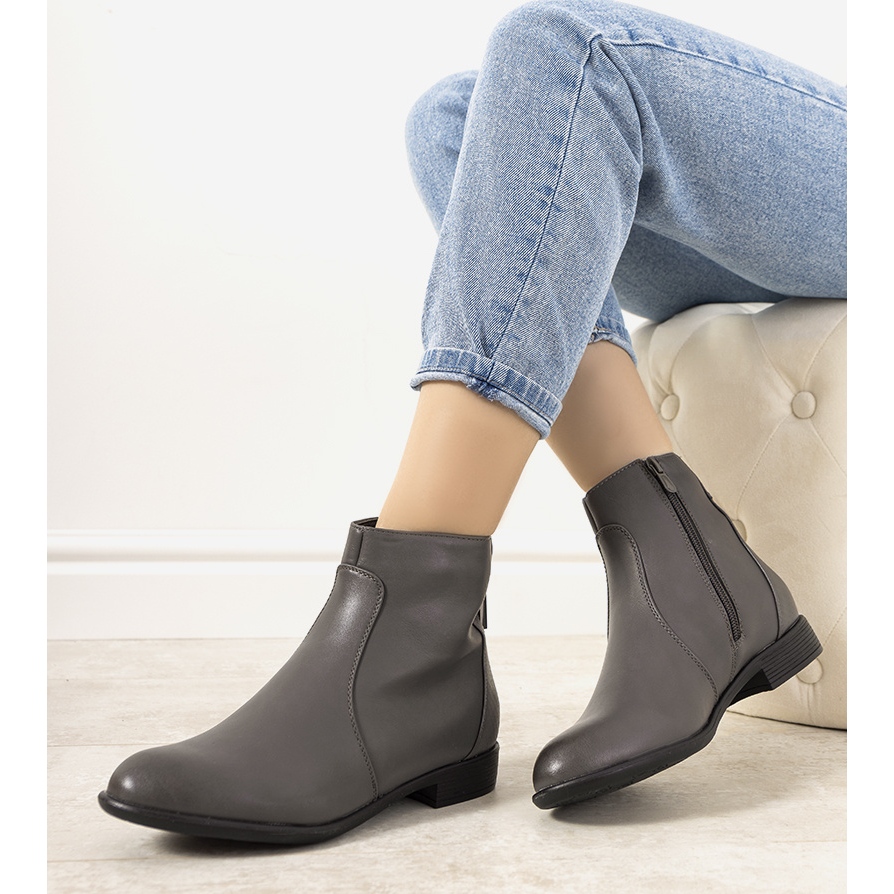 Découvrez le charme des bottines Barros grises pour femme, qui s'adaptent parfaitement à tous les styles ! Fabriquées en cuir écologique de haute qualité, ces bottines classiques allient élégance et confort. Leur design subtil avec une fermeture éclair joliment placée à l'arrière les rend accrocheurs et souligne parfaitement la forme des jambes.