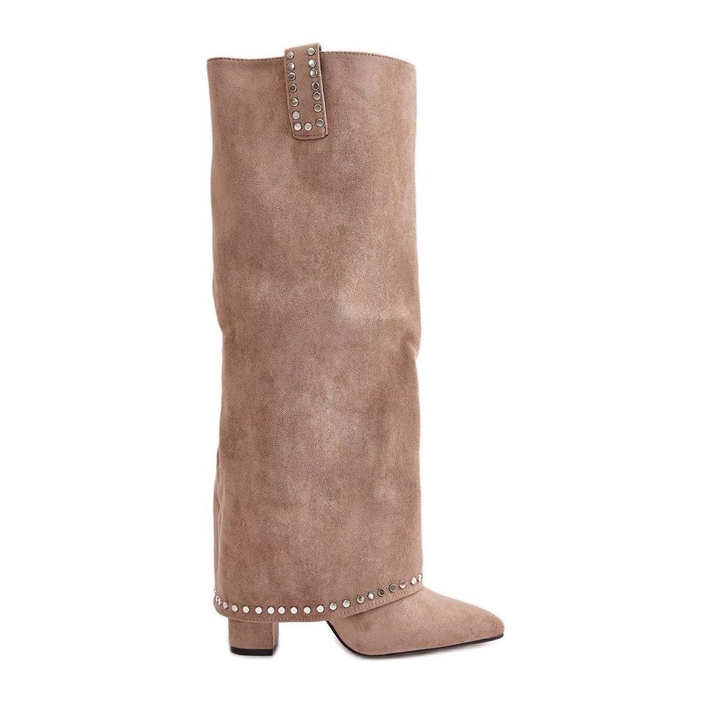 Détails: Bottes pour femmes Kaithena beiges avec tige à revers sur talon haut