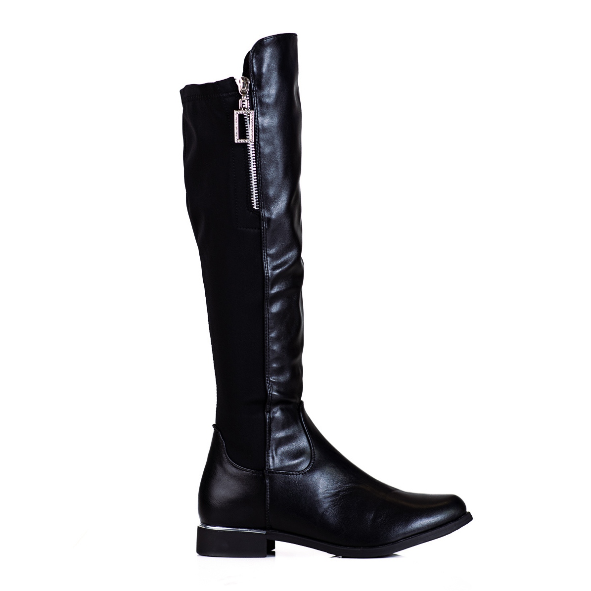 SHELOVET Bottes pour femmes noires à talons plats Shelovet avec une fermeture éclair décorative le noir