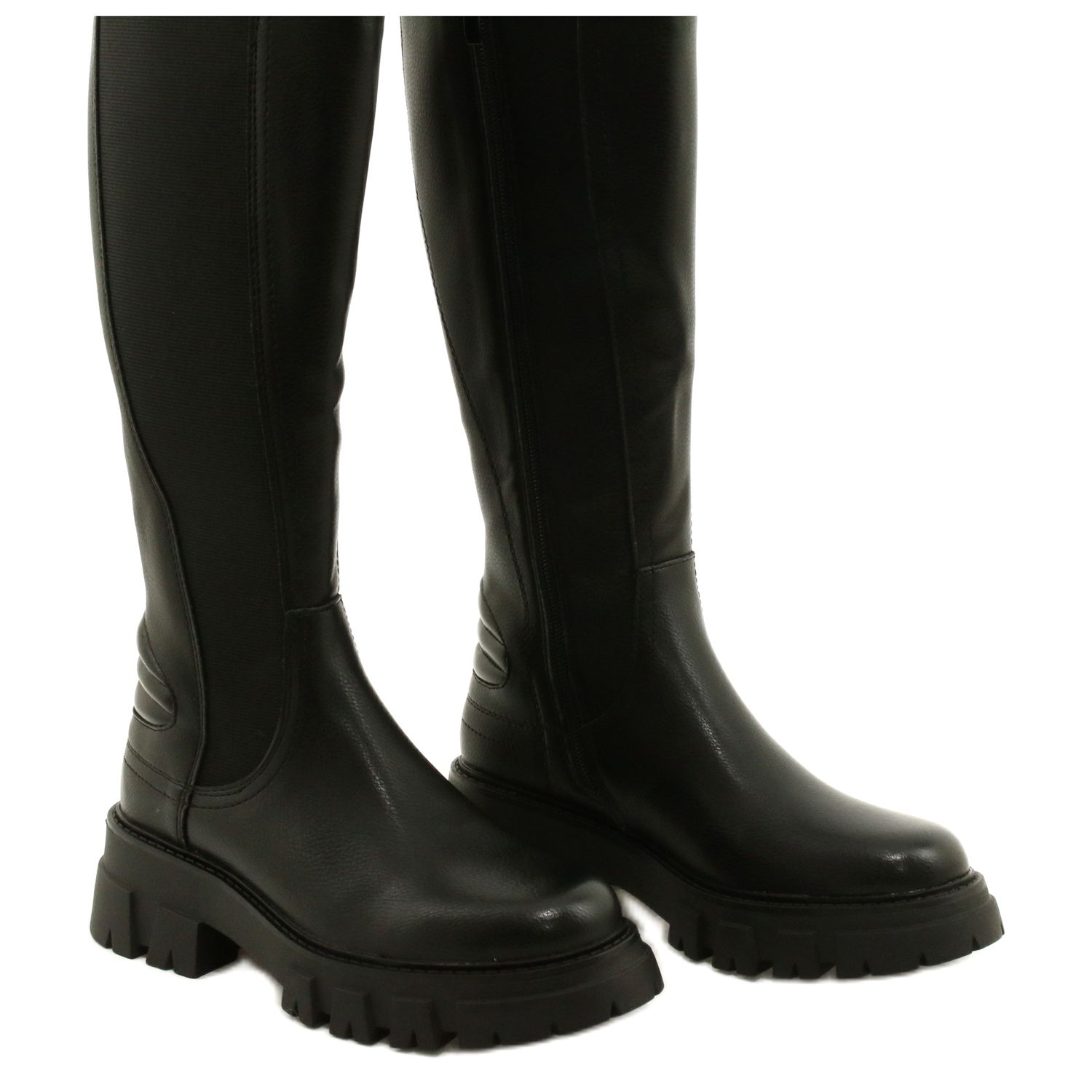 Leur bout rond et leur forme classique et intemporelle donnent à ces bottes un look phénoménal sur la jambe, ajoutant de l'élégance à n'importe quel style. La hauteur supérieure atteint le genou et une plateforme stable de 5,5 cm de haut assure un confort même en cas de port prolongé. De plus, la fermeture éclair facilite l'enfilage et le retrait des chaussures.