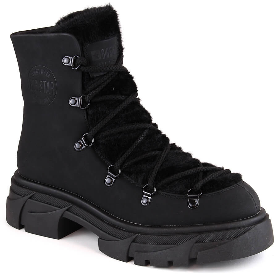 Détails: Bottes pour femmes sur la plate-forme lacées avec de la fourrure noire Big Star MM274572