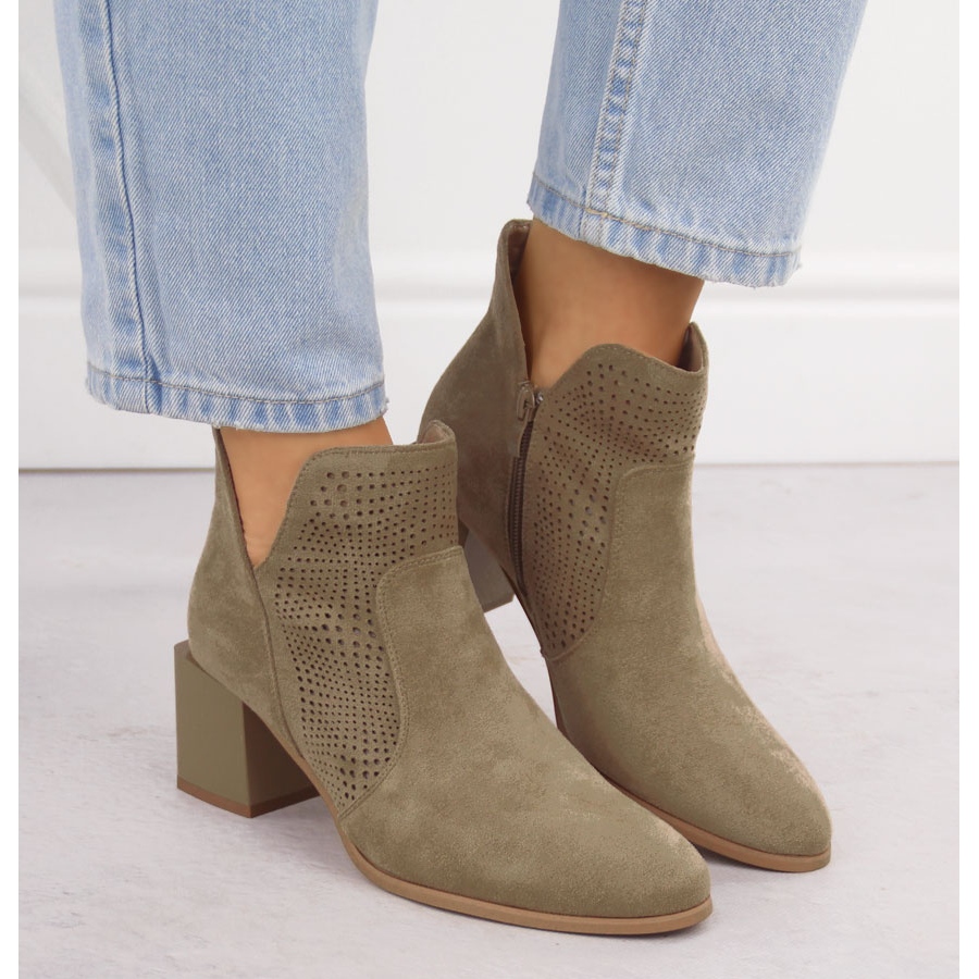 La tige de la cheville avec découpes et décorations ouvertes donne aux chaussures la légèreté et l'originalité, ce qui les fait bien se mélanger avec diverses stylisations - du décontracté à plus élégant, parfait au printemps et à l'automne. L'insert interne en cuir naturel et la doublure en tissu assurent le confort de l'utilisation tout au long de la journée, et la hauteur du talon de 5,5 cm signifie qu'elles peuvent être portées quotidiennement et pour des occasions spéciales.