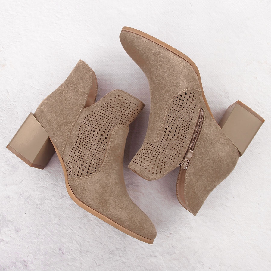 Détails: Bottes pour femmes sur le pilier de l'ouverture en daim beige sombre M. Daszyński SA217-6