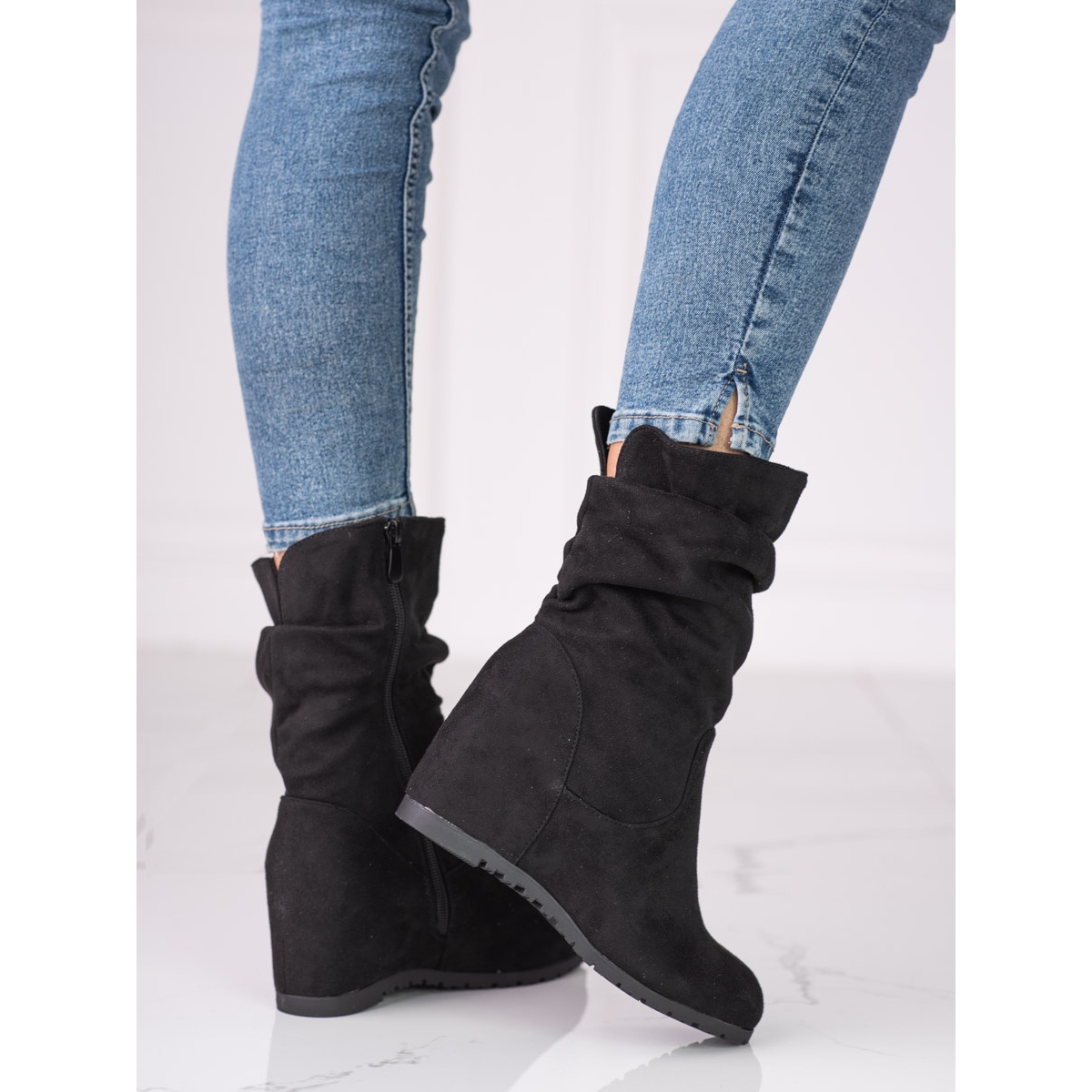 Découvrez l'élégance et le confort des bottines compensées pour femme Shelovet à tige volantée d'un coloris noir classique. Ces chaussures à la mode s'intègrent parfaitement au style décontracté, parfaites pour les sorties quotidiennes de la saison automne/hiver.
