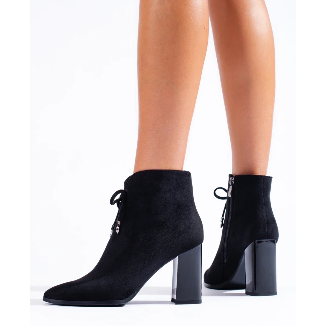 Nous vous présentons d'élégantes bottines à talons hauts pour femmes qui attireront certainement l'attention des amateurs d'accessoires de mode. Fabriquées en cuir suédé écologique, ces bottines noires allient style décontracté et élégant, ce qui en fait le choix parfait pour une variété d'occasions - des sorties quotidiennes aux réunions ou célébrations en soirée.