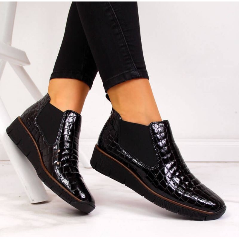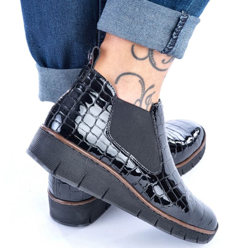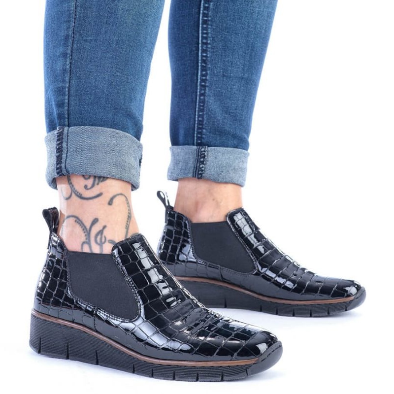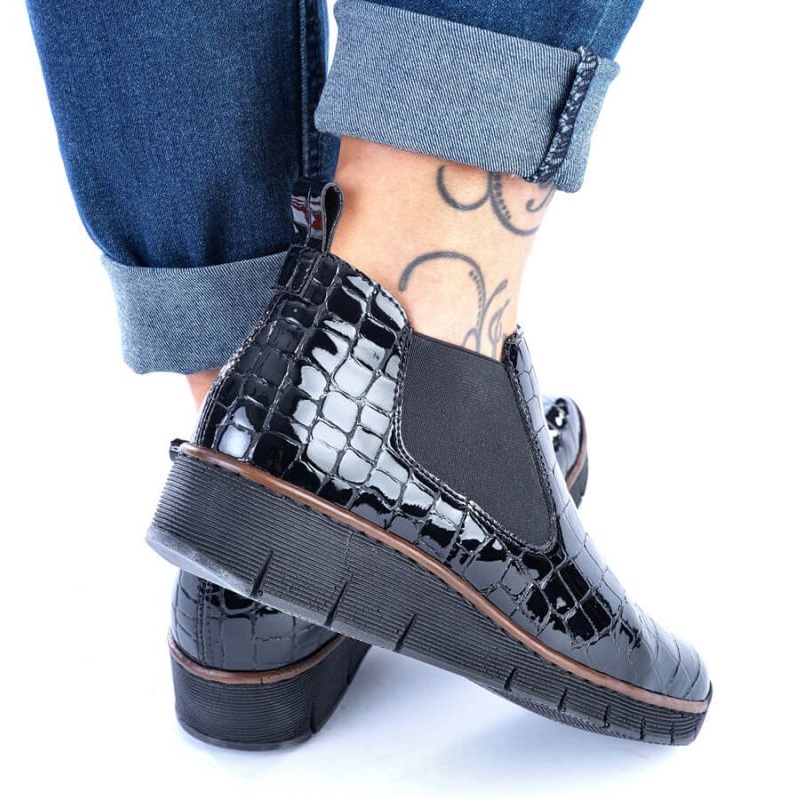 Détails: Bottes Rieker W R474 en cuir peau de serpent noir