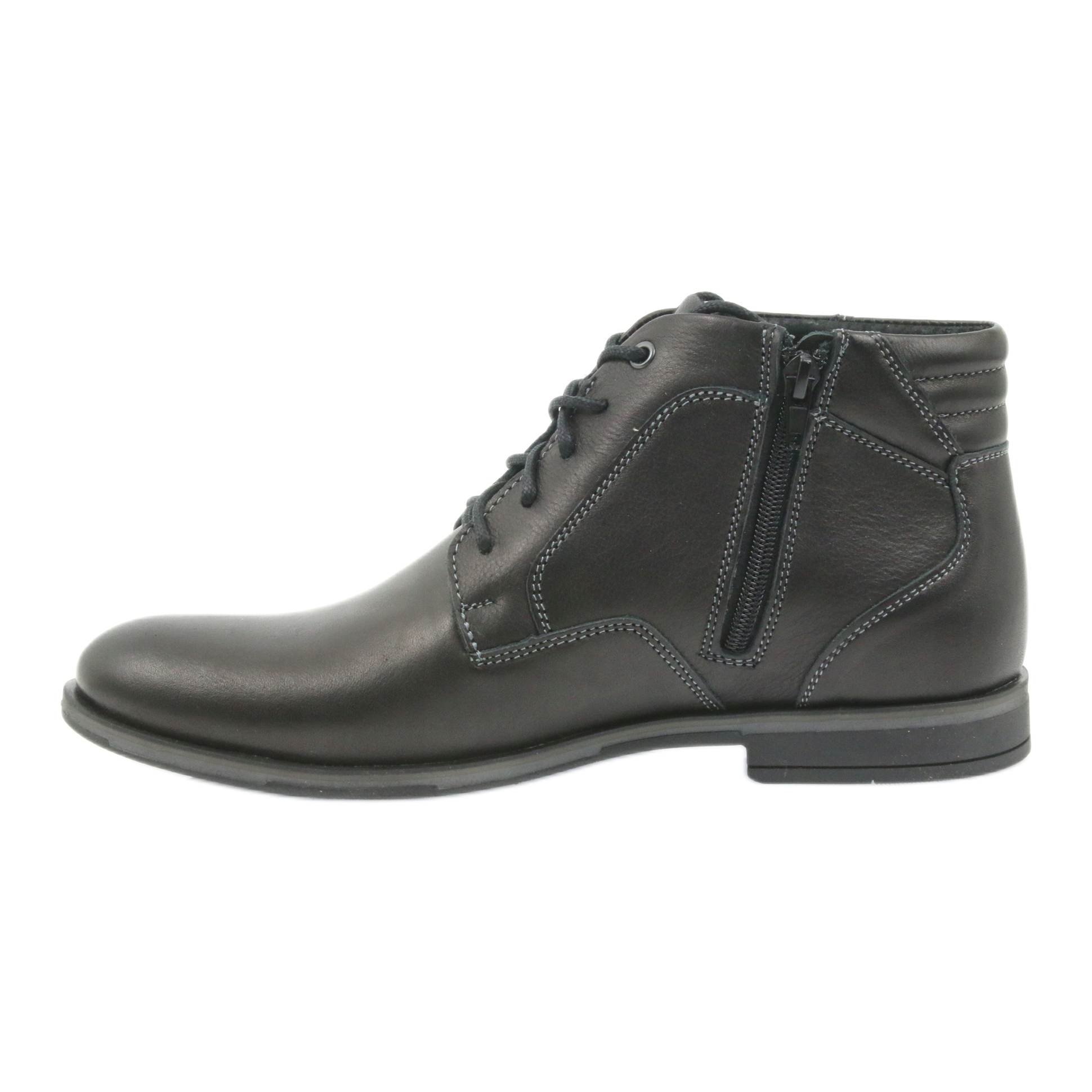 Fabriquées entièrement en cuir naturel de haute qualité dans une élégante couleur noire, ces chaussures offrent non seulement un look élégant, mais également une durabilité pendant de nombreuses années. Isolés avec de la fourrure, ils garantissent un confort thermique même les jours les plus froids, afin que vous n'ayez pas à vous soucier des conditions climatiques hivernales.