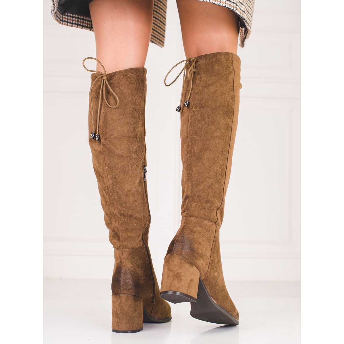 Détails: Bottes Shelovet élégantes pour femmes en daim écologique brun