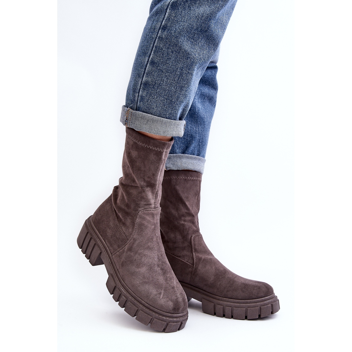 Inna marka Bottes Slip-On Workers À Talons Plats Gris Divella