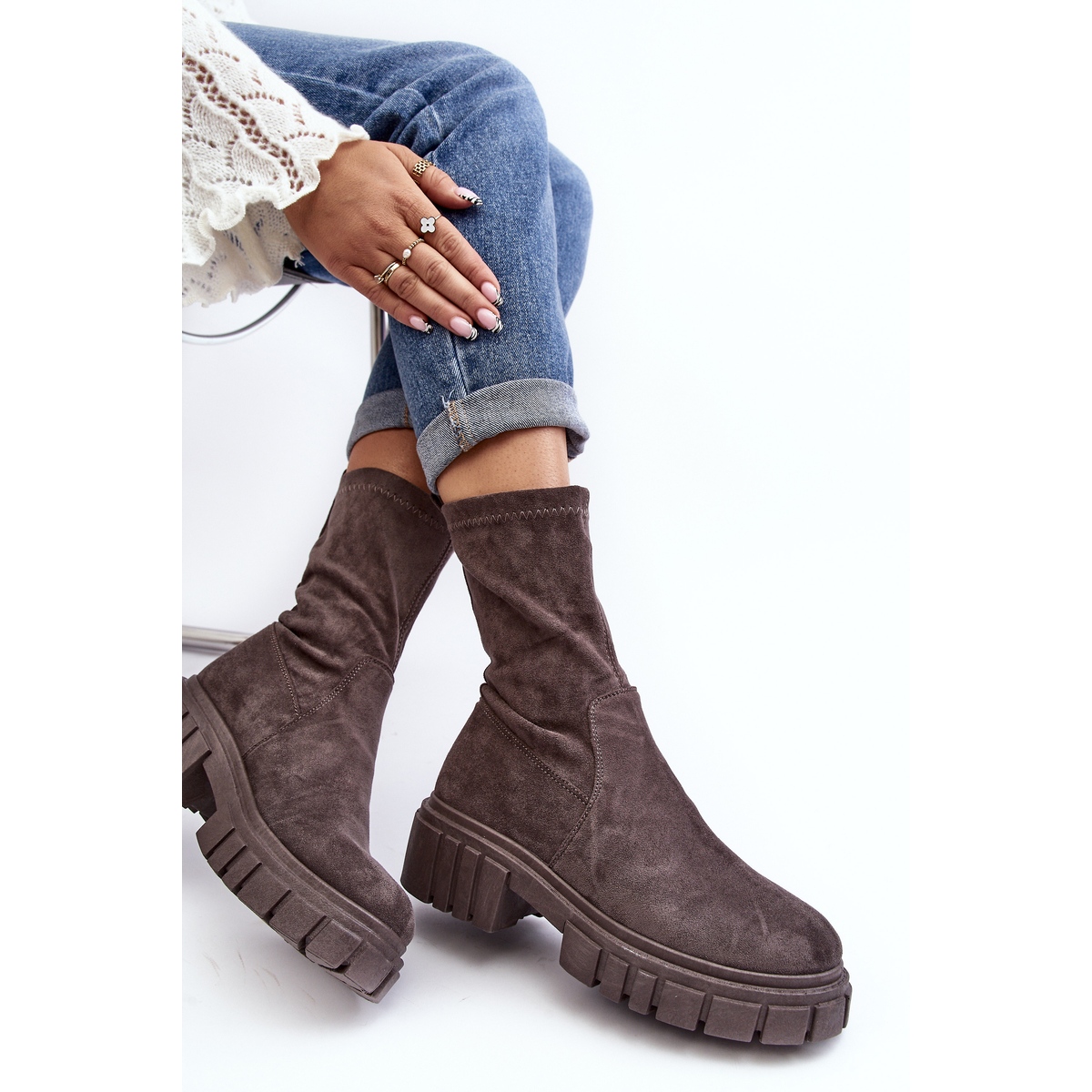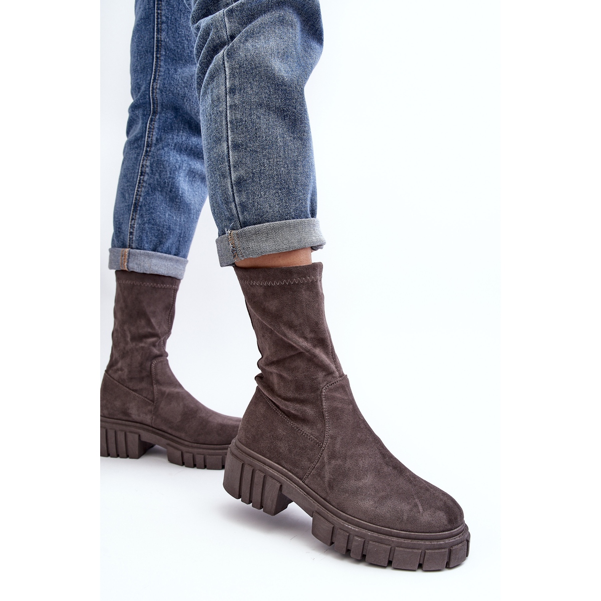 La construction solide sur une plateforme massive de 5 centimètres assure la stabilité et établit une position forte dans votre garde-robe de tous les jours. La couleur grise intemporelle et le design minimaliste font de ces bottes un ajout universel à divers styles d'automne.