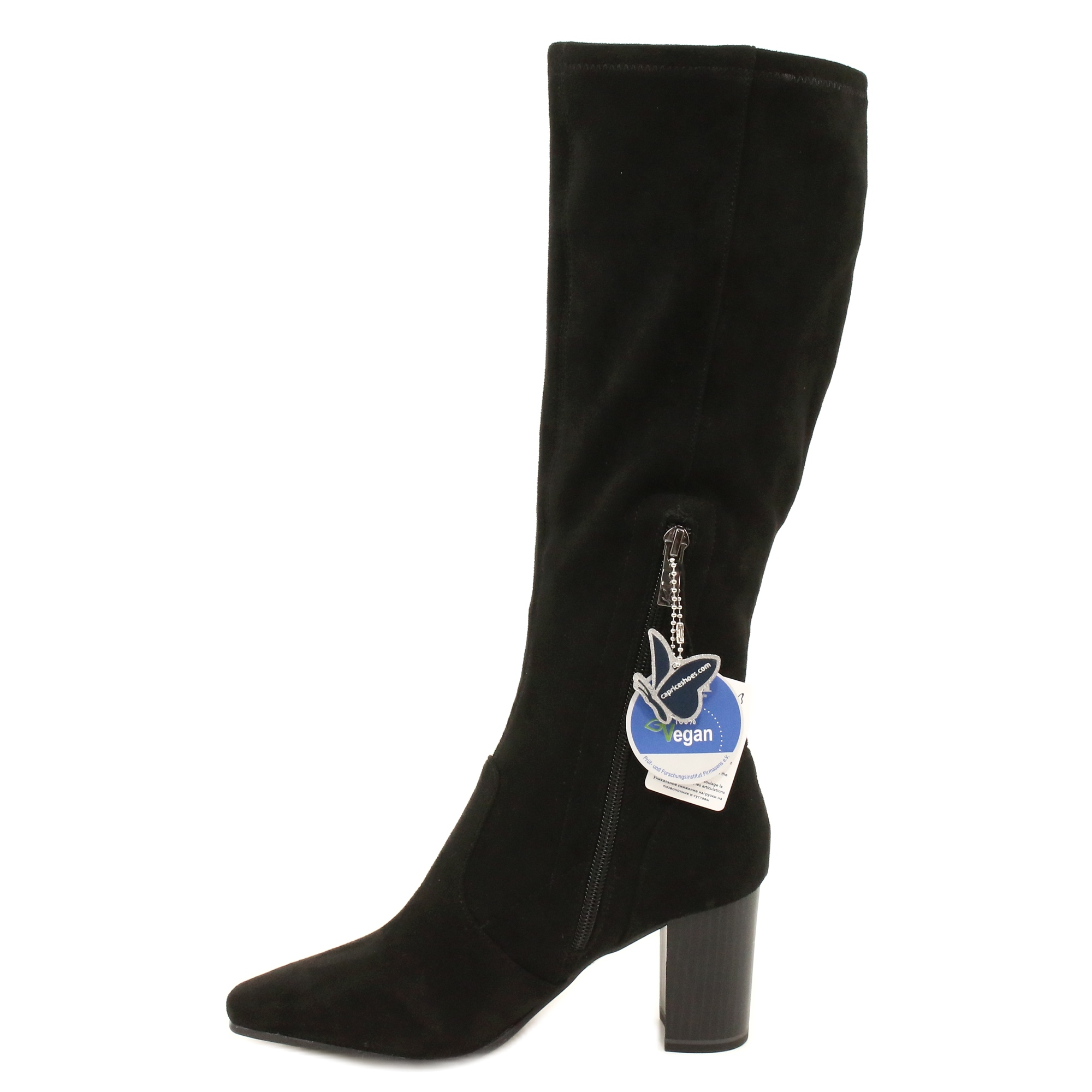 Des bottes longues élégantes en daim plus épais avec des propriétés d'étirement. Grâce au délicat élastique intérieur, le haut s'adapte bien au veau, et la structure insérée avec une serrure pratique le rend plus facile à mettre. La semelle intérieure textile douce fournit une circulation d'air et un confort, tandis qu'un poteau classique de 7 cm de haut est subtilement glissant la silhouette. Le nez éclairé ajoute une élégance à la coupe - parfaite tous les jours et les sorties.