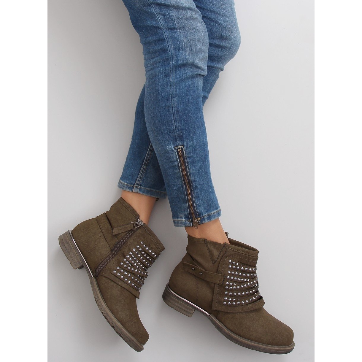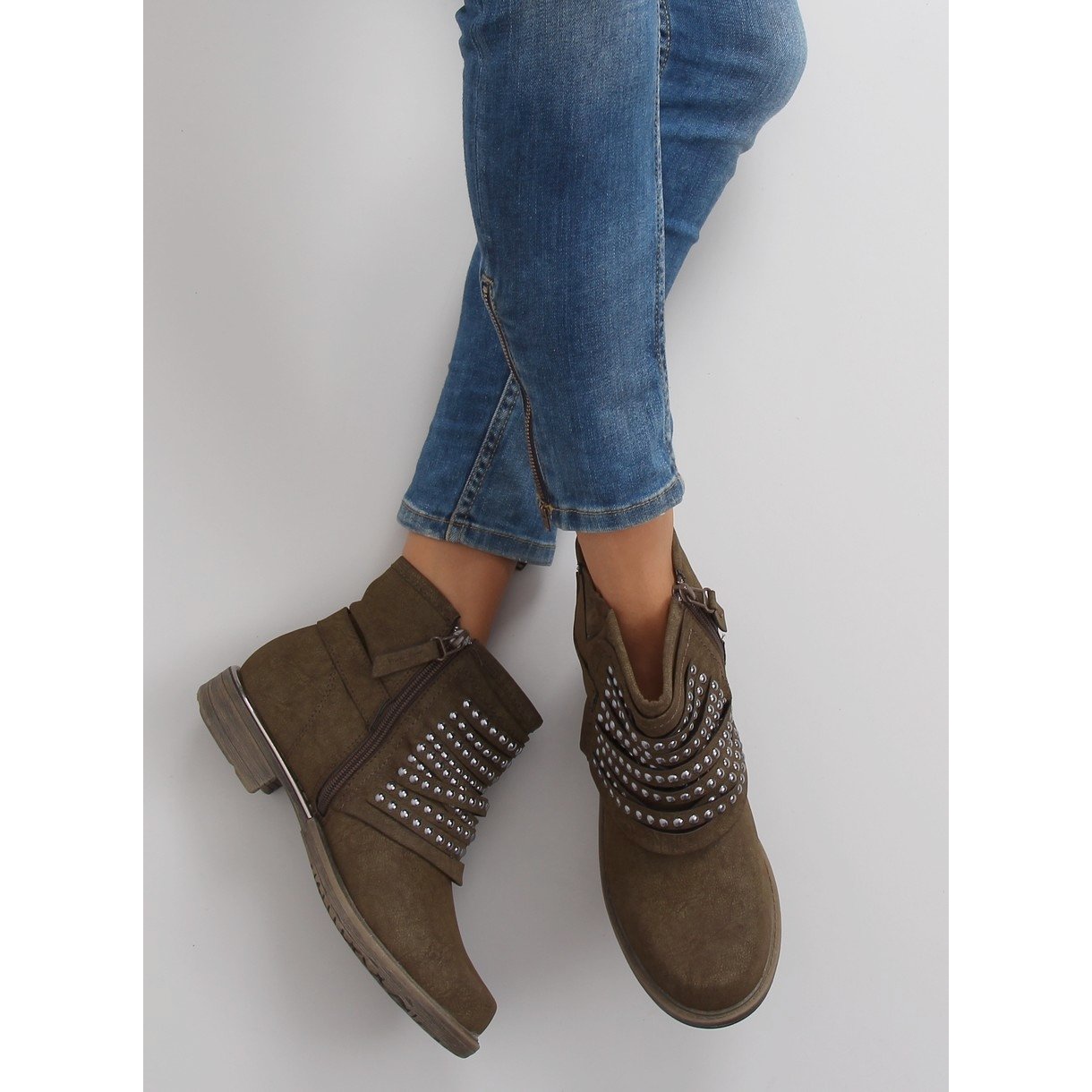Les bottes de style militaire 888-2 dans une teinte tendance de kaki sont un choix parfait pour les femmes qui apprécient à la fois le style et le confort. Fabriqués en éco-nubuck de haute qualité, ils garantissent durabilité et confort de port. Leur coupe originale avec de subtils plis sur le devant, ornée de clous tendance, leur confère un caractère unique, parfaitement en adéquation avec les tendances actuelles.
