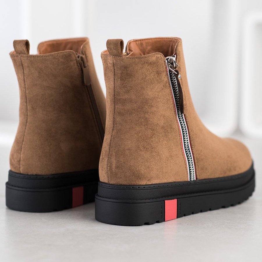Les bottes se caractérisent par un bout rond et un talon plat de 4 cm de haut, ce qui les rend confortables à porter pendant de longues heures. La tige haute, de 11 à 12 cm de haut, protège parfaitement la cheville et le talon souple et intégré ajoute de la stabilité. Fabriquées en cuir écologique de haute qualité imitant le daim, ces bottines sont non seulement superbes, mais sont également respectueuses de l'environnement.