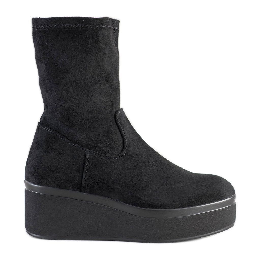 Les bottes plateforme Sergio Leone noires sont un choix parfait pour les femmes modernes qui apprécient l'élégance combinée au confort. Fabriquées en cuir écologique de haute qualité imitant le daim, ces bottes à la mode sont le complément parfait au style automne-hiver.