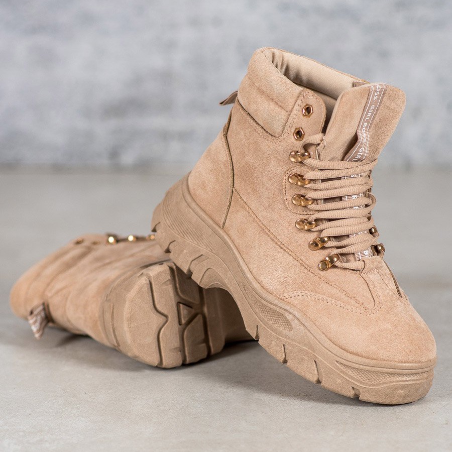 Les bottines plateforme VICES marron clair sont un choix parfait pour les femmes qui apprécient à la fois le confort et l'apparence à la mode. Grâce à une plateforme massive de 5 centimètres et une semelle avec bande de roulement, ces chaussures sont parfaites pour les randonnées en montagne et les promenades dans des conditions difficiles.