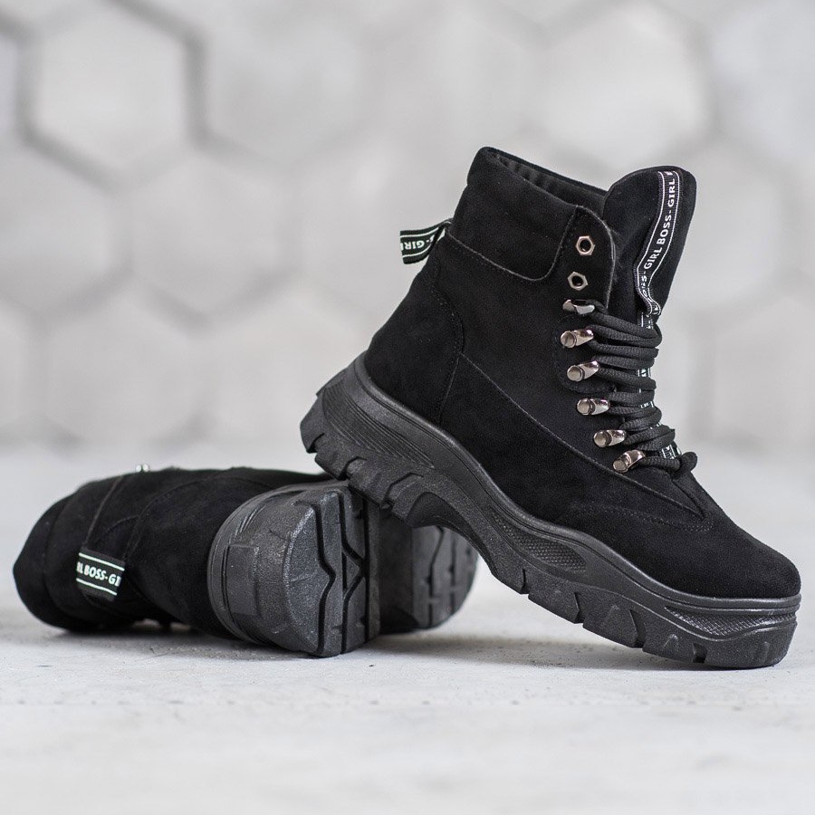 Découvrez l'élégance et le confort avec les bottines plateforme VICES de couleur noire classique. Ces bottes élégantes sont un choix parfait pour les femmes qui apprécient un look tendance et un confort au quotidien. Fabriqués en cuir suédé écologique de la plus haute qualité, ils allient parfaitement esthétique et responsabilité écologique.
