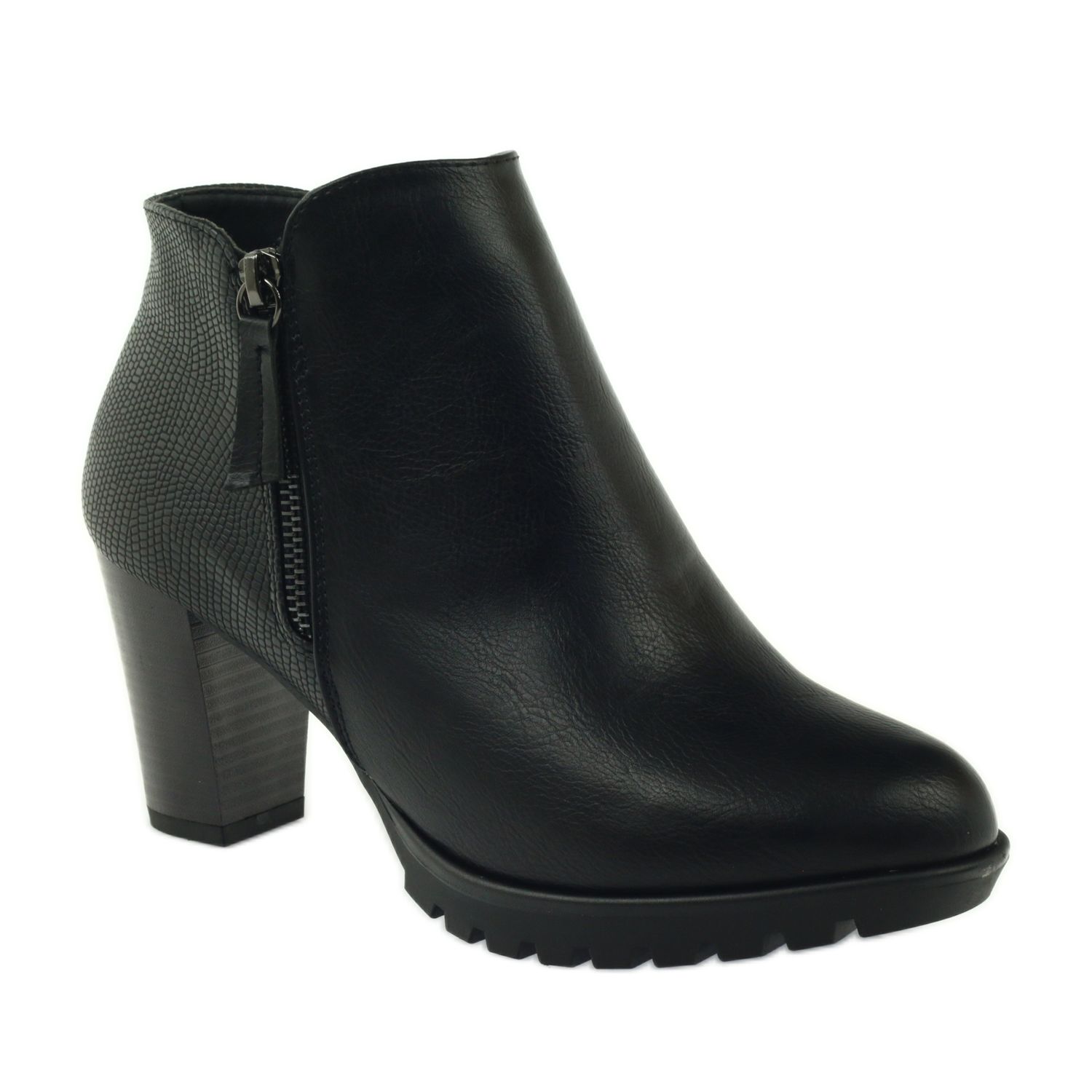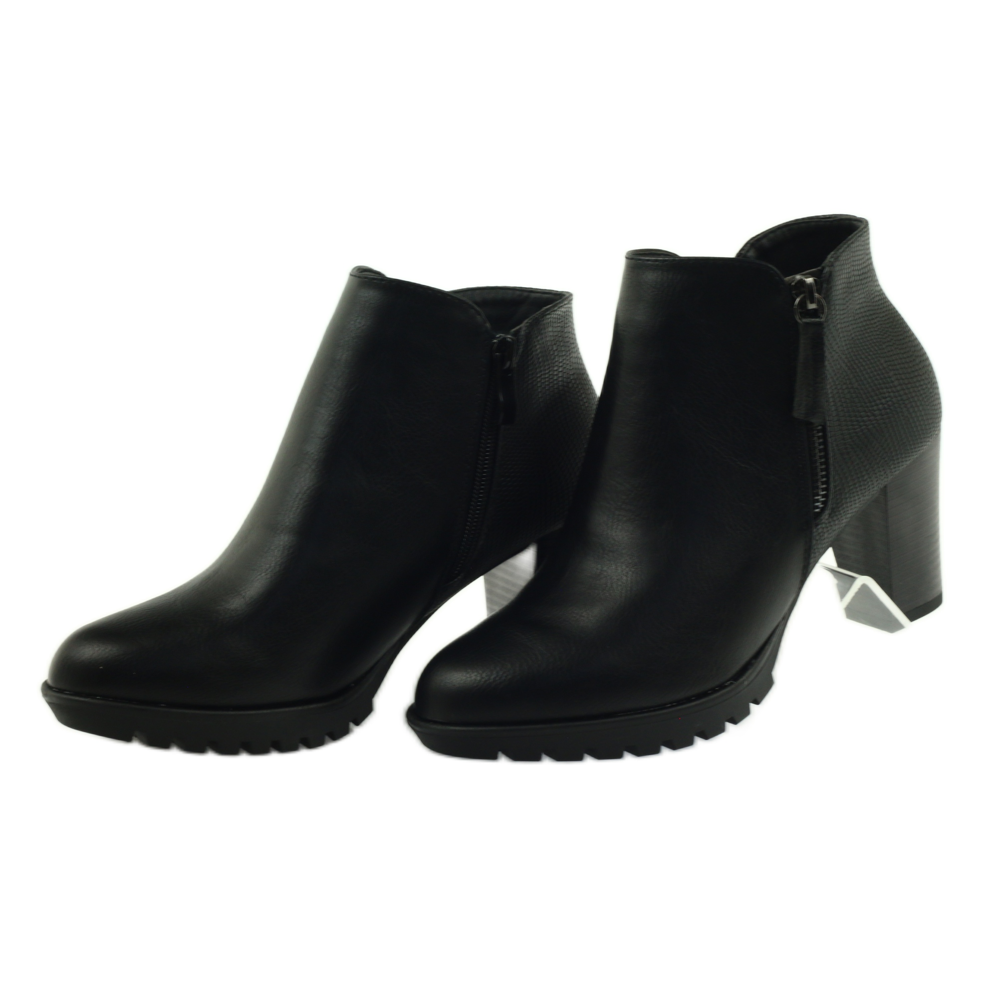 Nous vous présentons les élégantes bottines noires à talons hauts 1708 de la célèbre entreprise M.Daszyński, qui enrichiront certainement votre garde-robe. Fabriquées en simili cuir de haute qualité, ces bottines allient un design élégant à un port confortable, ce qui en fait le choix parfait pour les mois d'hiver.