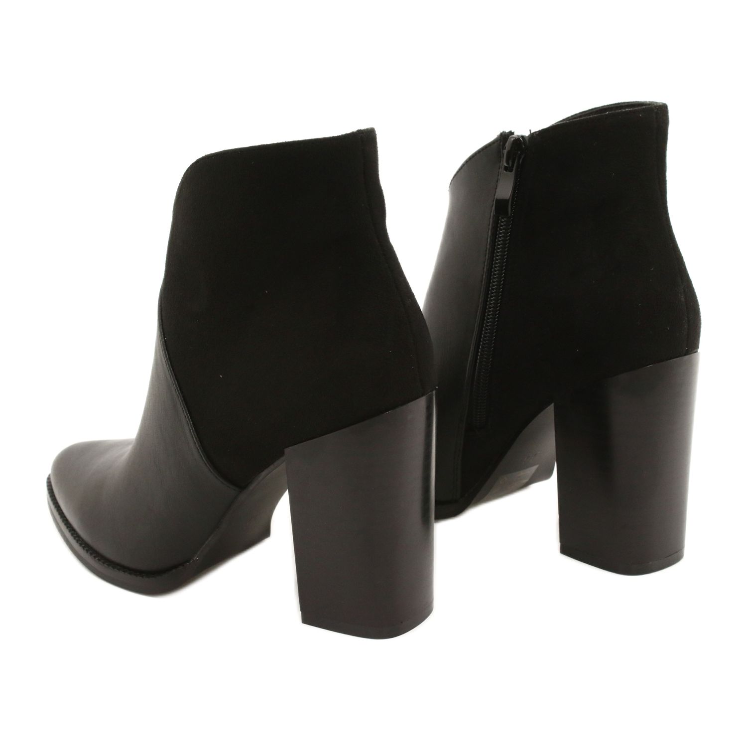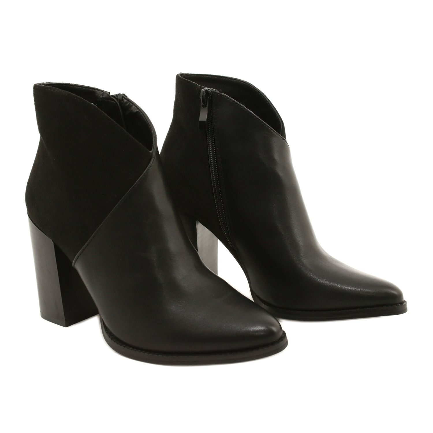 Fabriquées en cuir écologique de haute qualité, ces bottines attirent l'attention par leur couleur noire universelle, qui se marie parfaitement avec une variété de styles - d'une robe élégante au jean décontracté. Un talon fin de 8,5 cm et un bout pointu subtil soulignent la silhouette féminine et confèrent à chaque occasion un caractère unique.