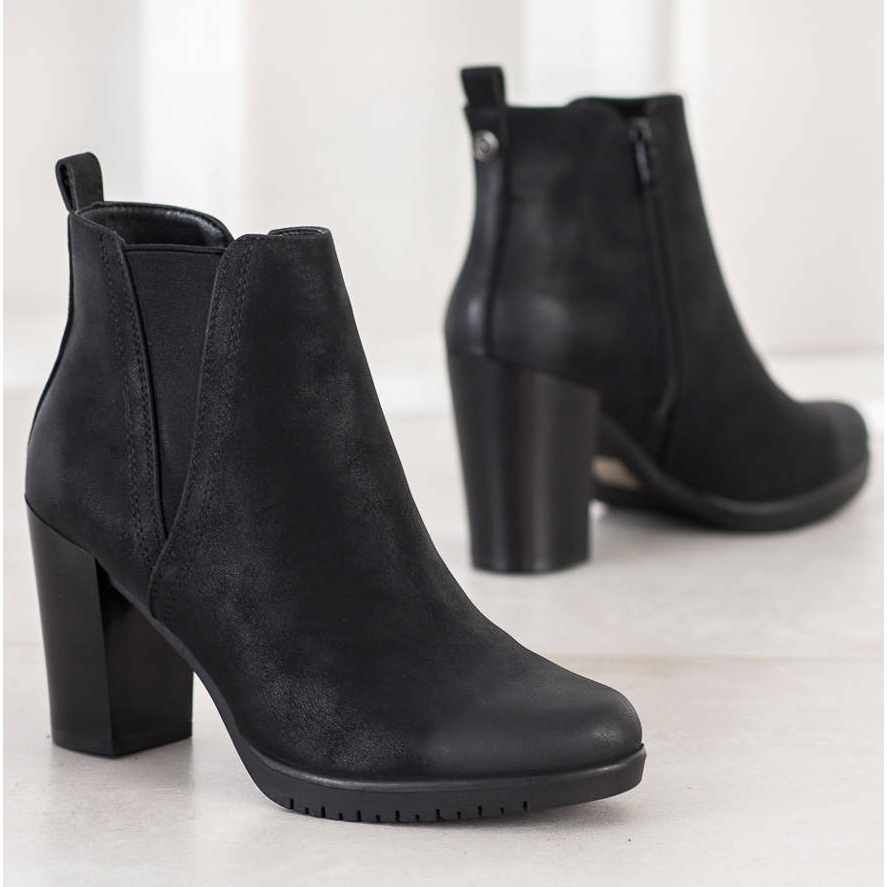 Découvrez l'élégance et le confort dans une seule paire de chaussures grâce aux bottines à talons hauts noires Sergio Leone. Ces bottes extrêmement élégantes, fabriquées en cuir suédé écologique de haute qualité, sont le choix parfait aussi bien pour un usage quotidien que pour les sorties en soirée.