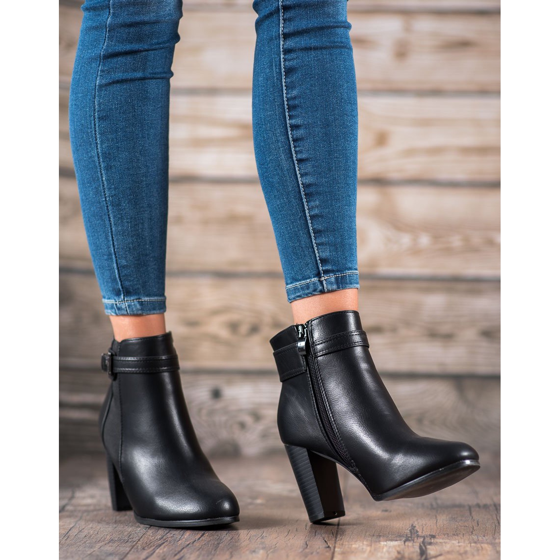 Le talon bloc de 8,5 cm de haut rend les bottes non seulement élégantes, mais aussi confortables à porter tout au long de la journée. L'intérieur des chaussures est doublé de cuir écologique, ce qui assure douceur et confort lors de l'utilisation. À son tour, la semelle synthétique avec une finition lisse augmente la traction, ce qui est particulièrement important en automne/hiver.