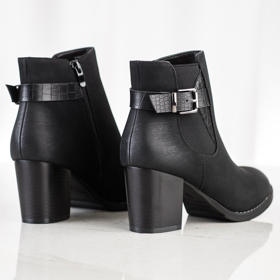 Découvrez l'élégance et le confort grâce aux bottines à talons hauts avec boucle décorative du fabricant J. Star. Ces bottines noires élégantes sont le choix parfait pour les femmes qui souhaitent allier style décontracté et élégant. Fabriqués en cuir écologique de haute qualité, ils séduisent non seulement par leur esthétique, mais aussi par leur confort de port.
