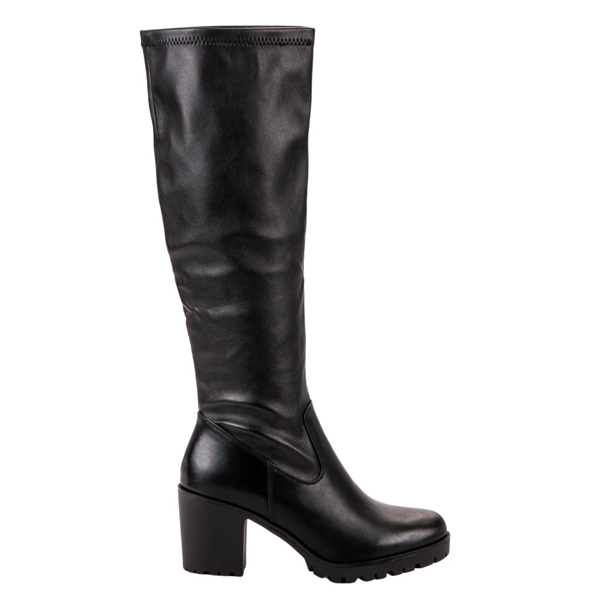 Les bottes noires à talons hauts VINCEZA sont le choix parfait pour la saison automne/hiver. Ces chaussures élégantes combinent une coupe classique avec un style moderne, ce qui en fait un complément parfait à de nombreux styles de tous les jours. Un talon bloc de 7,5 cm de haut et une plateforme de 2 cm assurent un confort de port tout en ajoutant de la légèreté à la silhouette et en allongeant les jambes.