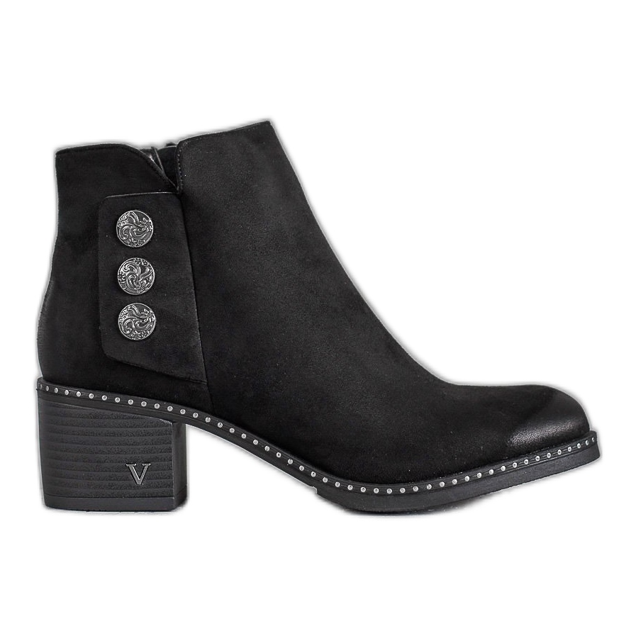 Découvrez l'élégance et le confort dans les extraordinaires bottines à talons hauts VINCEZA d'une couleur noire classique. Ces chaussures pour femmes de haute qualité sont fabriquées dans un matériau résistant semblable au cuir, ce qui garantit non seulement un look élégant, mais aussi un confort de port.