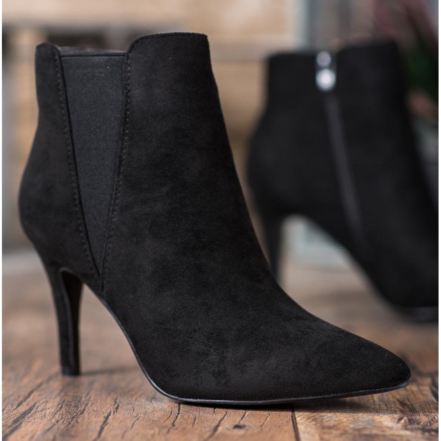 Les bottines à talons hauts Marquiz noires sont un choix parfait pour toutes les femmes qui souhaitent allier élégance et confort. Fabriquées en cuir écologique suédé de haute qualité, ces bottes sont non seulement élégantes, mais sont également conviviales pour les personnes qui préfèrent un style de vie végétalien.