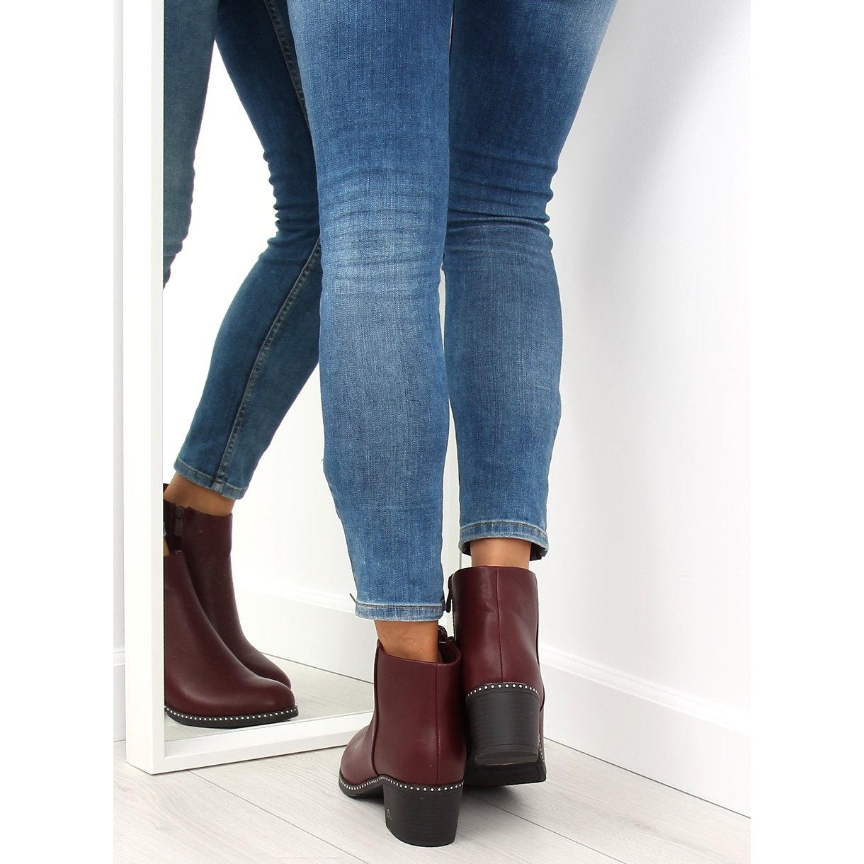 Inna marka Bottes sur un talon stable bordeaux BH120-KB Wine rouge