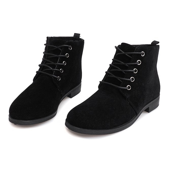 Découvrez le dernier modèle de bottines à lacets FC-P04 au coloris noir intemporel, qui allient style et confort. Ces élégantes bottes pour femmes, fabriquées en cuir suédé écologique de haute qualité, sont un choix parfait pour toute saison. L'intérieur légèrement isolé le rend confortable à porter même par temps froid.