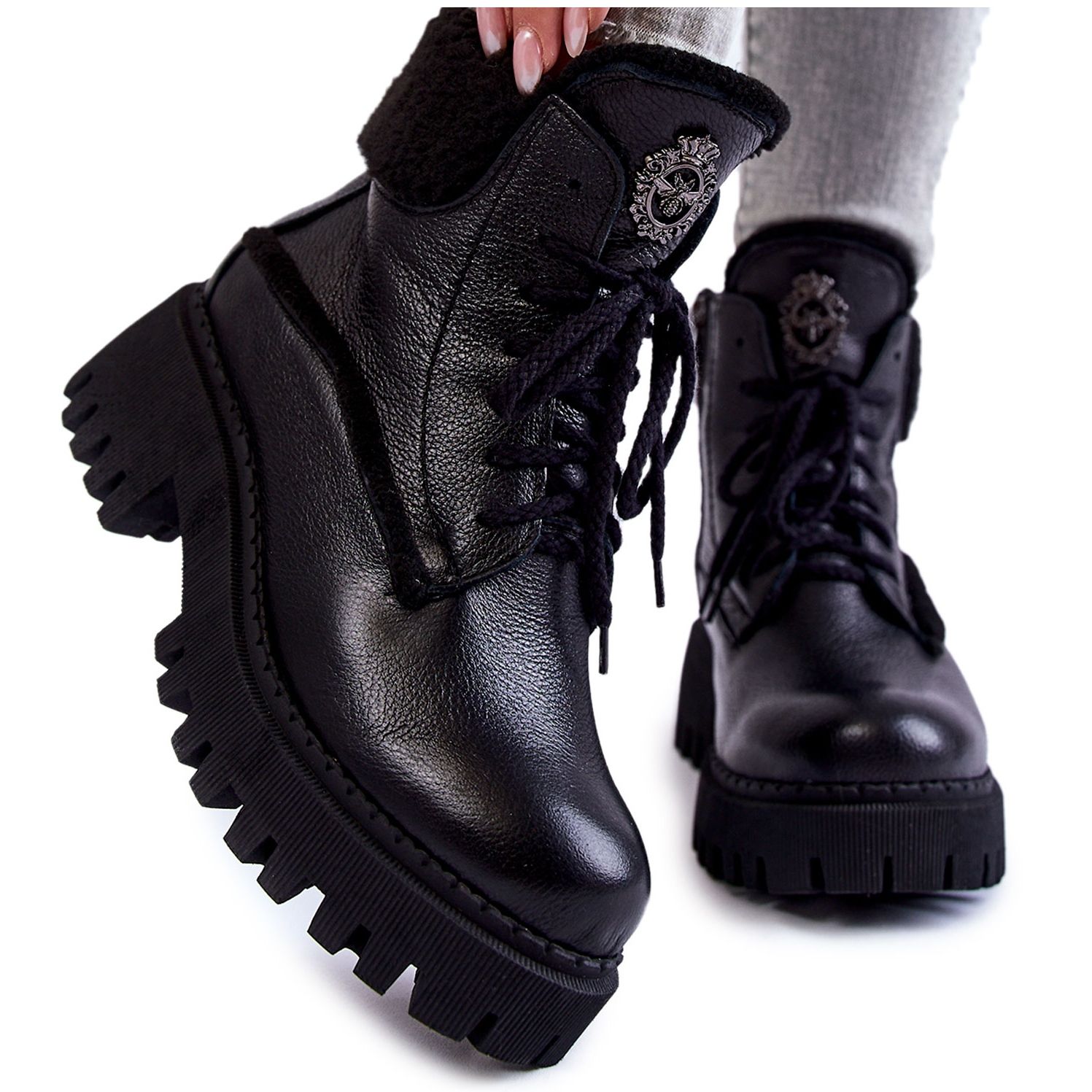 - Modèle: Bottes trappeur en cuir noir pour femmes Vergo