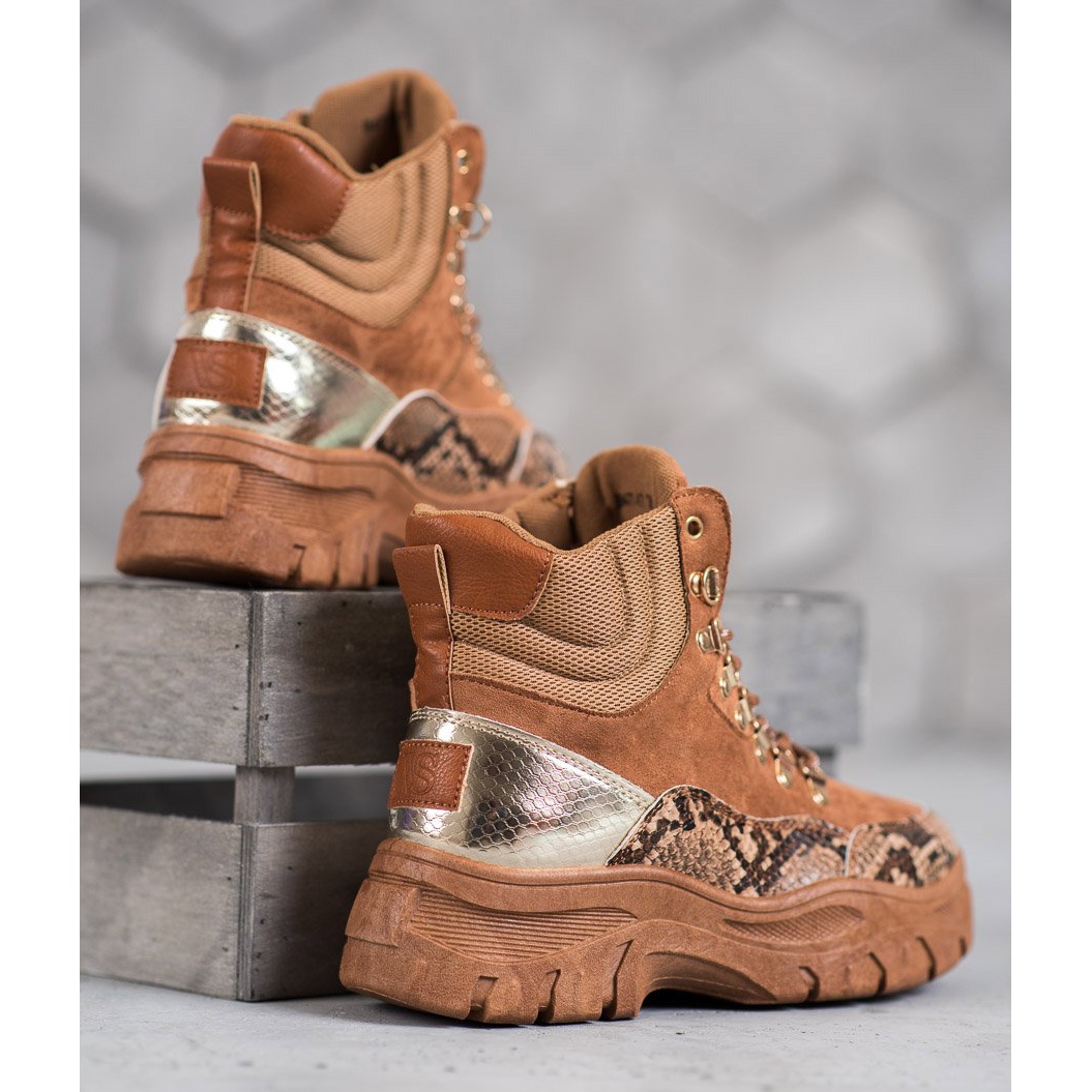 Les bottines à lacets marron de VICES sont une combinaison de style classique et d'une touche audacieuse et tendance. L'introduction d'imprimés serpent argentés est une réponse aux tendances les plus en vogue de la saison, faisant de ces bottes non seulement confortables, mais aussi un choix élégant pour les femmes à la recherche d'originalité dans leur style de tous les jours.