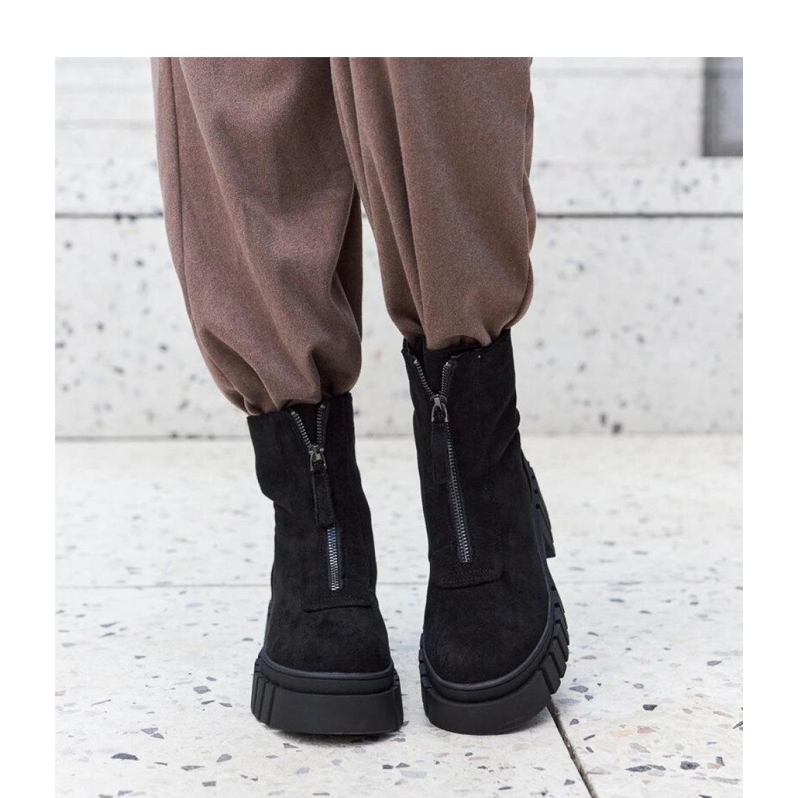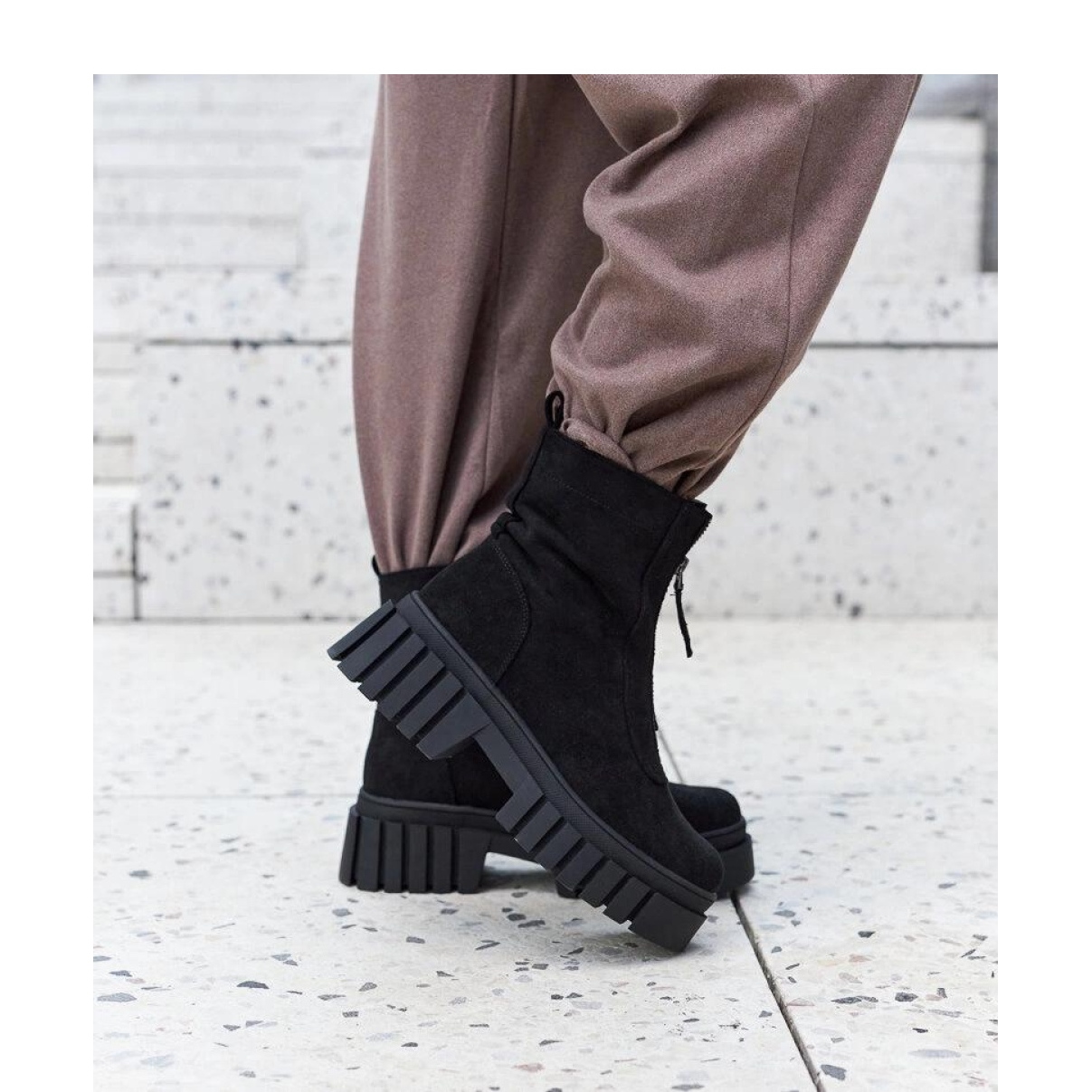 Les bottines noires pour femmes sont des chaussures parfaites pour les journées plus froides. Fabriqués en éco-suède et isolés, ils offrent chaleur et confort dans toutes les conditions. La semelle épaisse en caoutchouc les rend résistantes à l'humidité et protègent de la pluie ou de la neige. La fermeture éclair pratique facilite l'enfilage et le retrait des chaussures, et la possibilité de les porter avec des talons plats ou bas vous donne la liberté de les assortir à votre style. Ces bottes s'agencent non seulement parfaitement avec les tenues d'hiver, mais offrent également protection et confort dans des conditions météorologiques plus difficiles. Parfait pour l'automne et l'hiver.