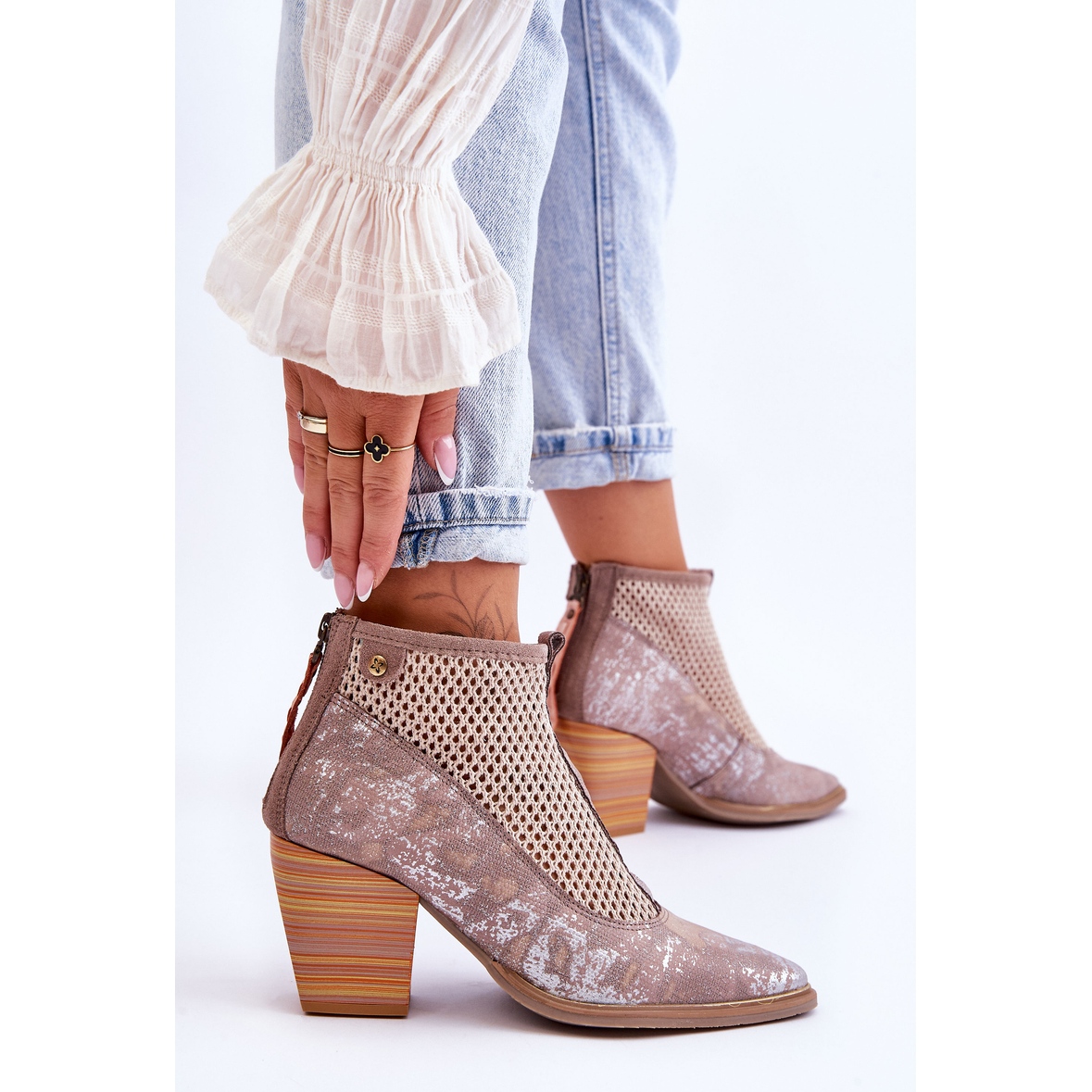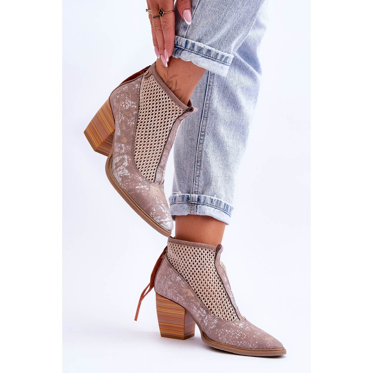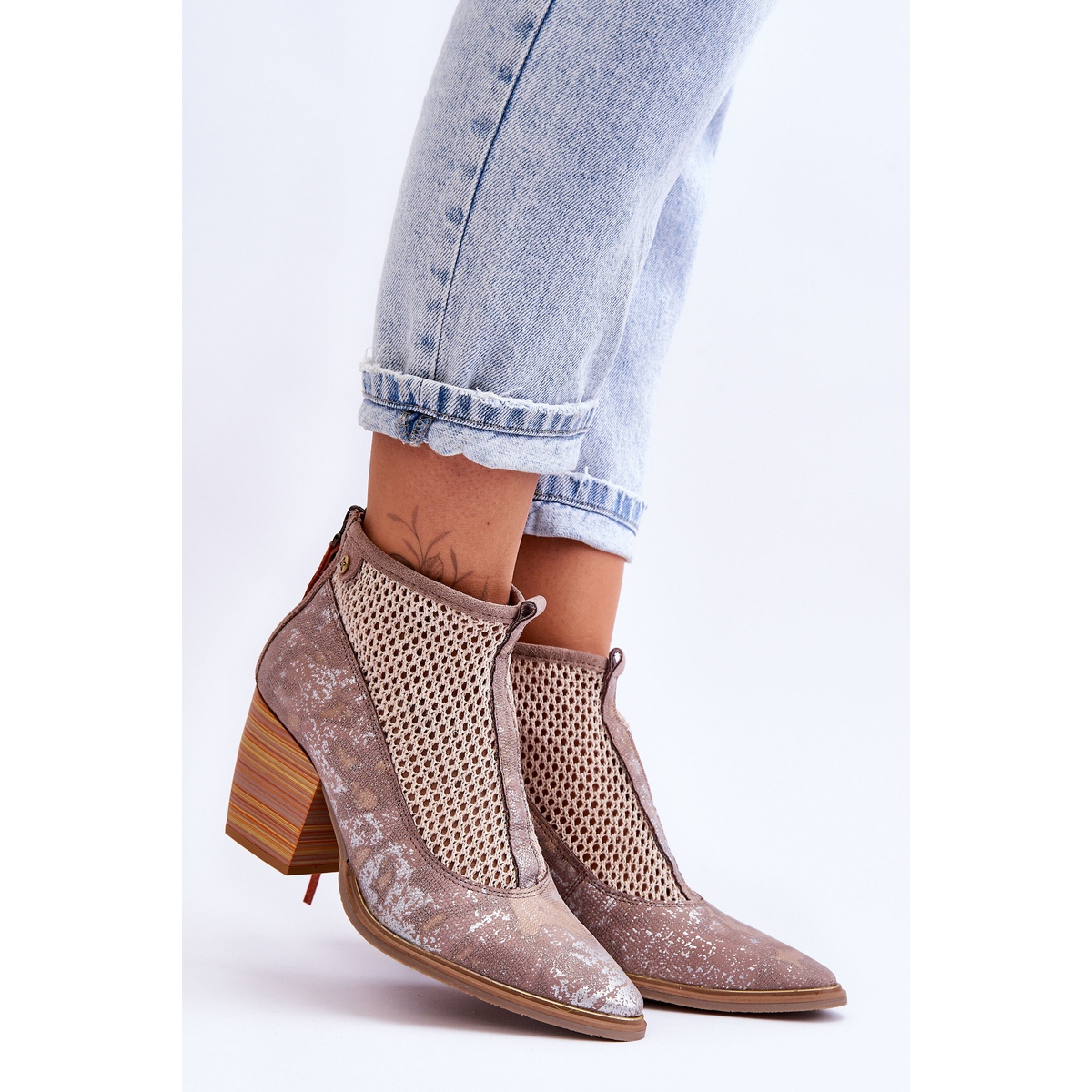 Fabriquées en cuir naturel de haute qualité, les bottes se distinguent non seulement par leur esthétique élégante, mais aussi par leur fonctionnalité. Le maillage décoratif leur confère un caractère léger et ajouré, ce qui en fait un excellent choix pour le printemps, l'été et l'automne. La fermeture éclair classique à l'arrière de la tige facilite l'enfilage et le talon rigidifié offre un maintien adéquat du pied.