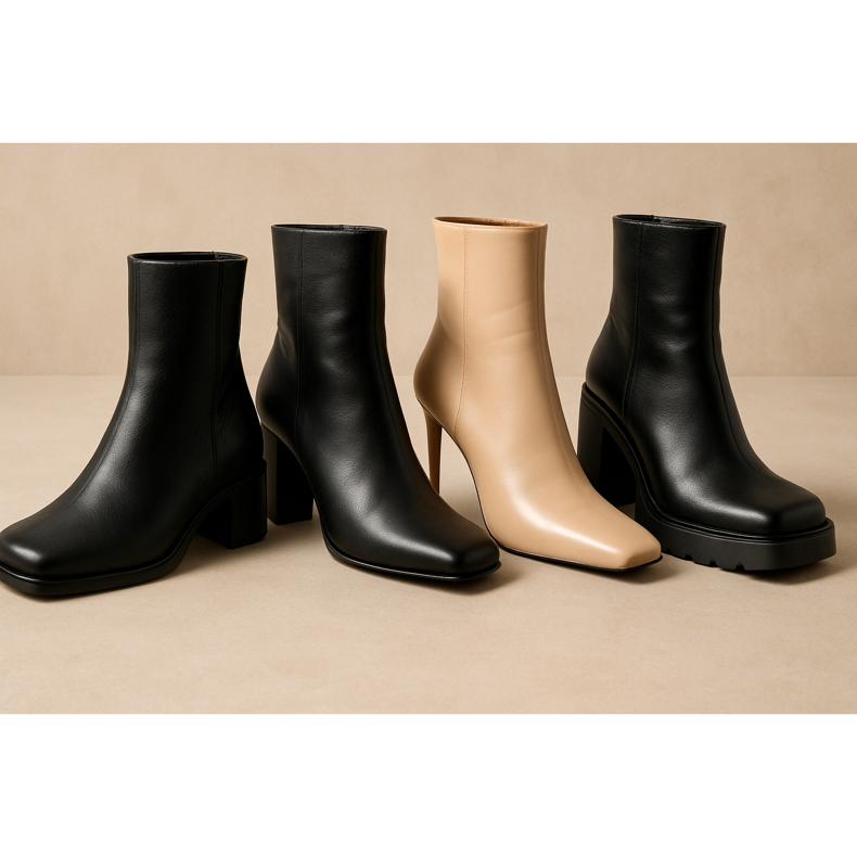 Les bottines à bout carré sont l'une des tendances les plus en vogue des dernières saisons. Ces chaussures allient minimalisme moderne et caractère rétro, créant la base parfaite pour de nombreux styles. Le bout carré confère aux chaussures une forme géométrique qui contraste joliment avec les lignes douces de la silhouette féminine.